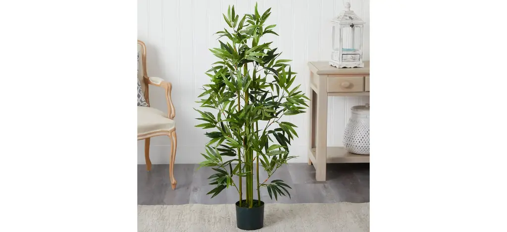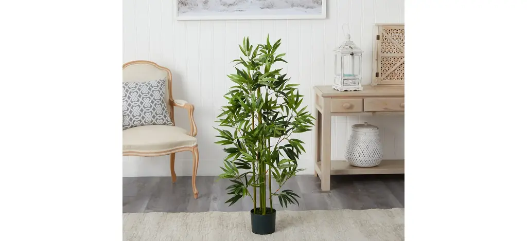 Inject hints of the jungle with this 4ft Bamboo Artificial Tree. Inspired by nature and crafted from high-quality materials by horticulturists feel inspired by adding a realistic artificial tree to enhance the beauty in your home. Feel free to shape in your space with bendable branches and watch the natural detailing throughout. Standing 4' from a nursery planter (included in height), place in any setting and add your favorite planter. Perfect to create barriers for privacy, add to a bathroom or a living room.