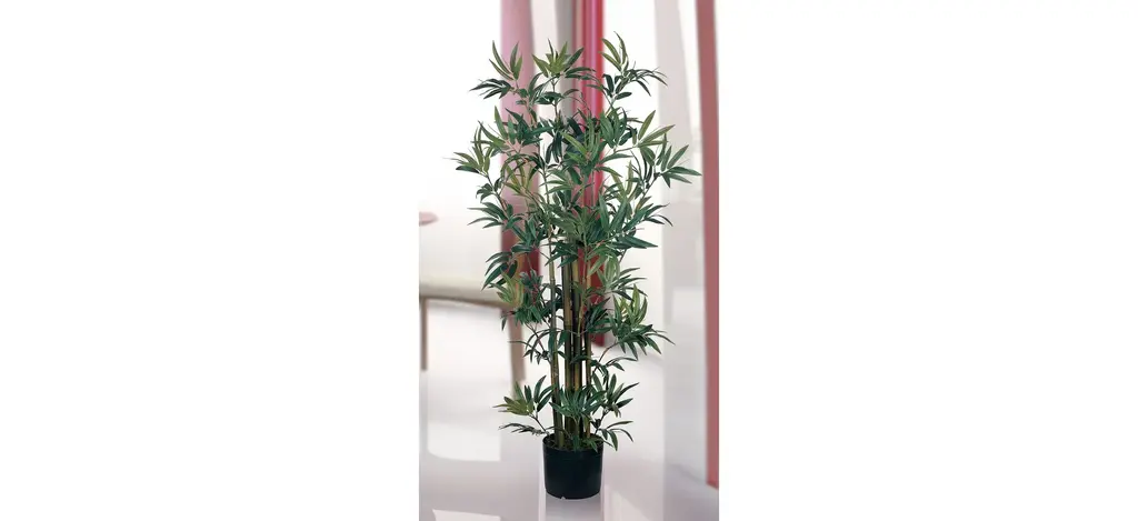 In response to its popularity, our bamboo family has grown to include this 4' Bamboo Silk Plant that contains nine stalks and 540 leaves. It comes pre-arranged in a black plastic pot. Display this silk tree by itself, or combine it with our other silk bamboo plants and trees to create an indoor bamboo garden.