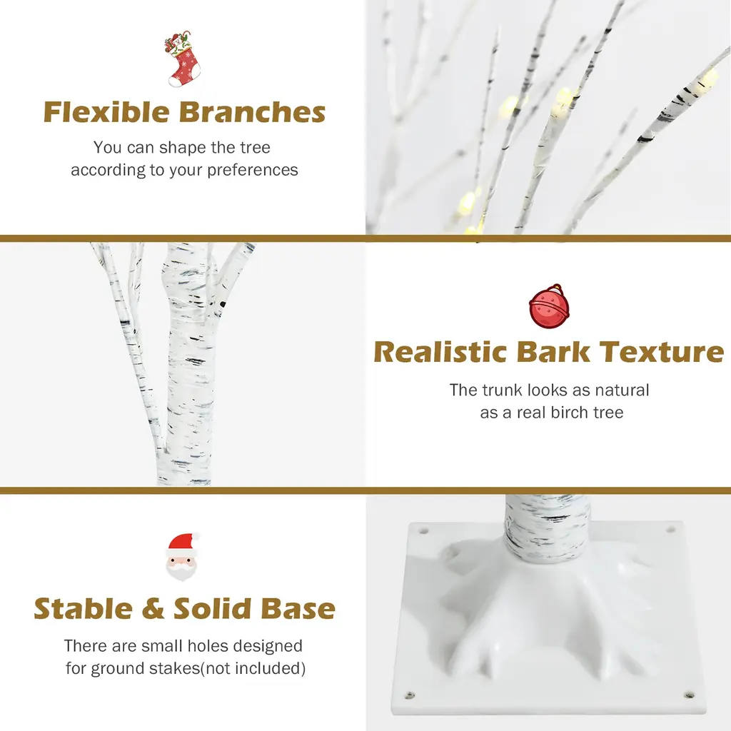 4Ft Lighted Birch Tree Artificial White Christmas Tree W Led Lights - 4 Foot