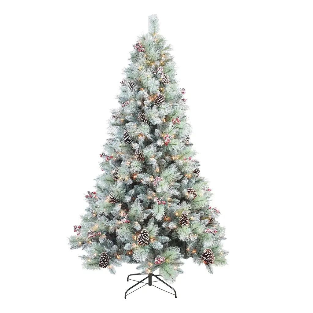 This 4ft Nearly Natural pre-lit Christmas tree features snow-flocked branches and pine cones for a realistic winter look. Made from eco-friendly PE and PVC, it’s durable and easy to assemble. The sturdy metal base ensures stability, while 120 LED lights and 11 flashing modes create a festive atmosphere. Features:Specifications: