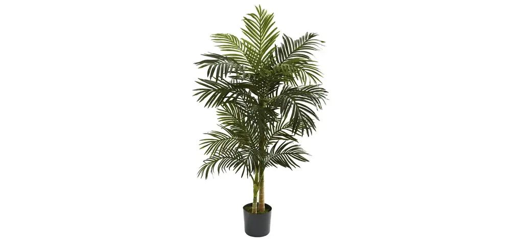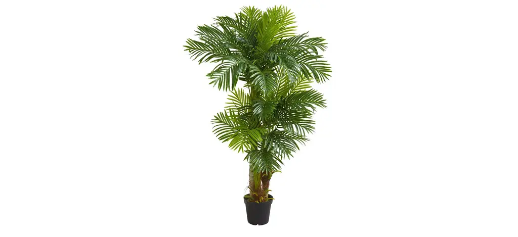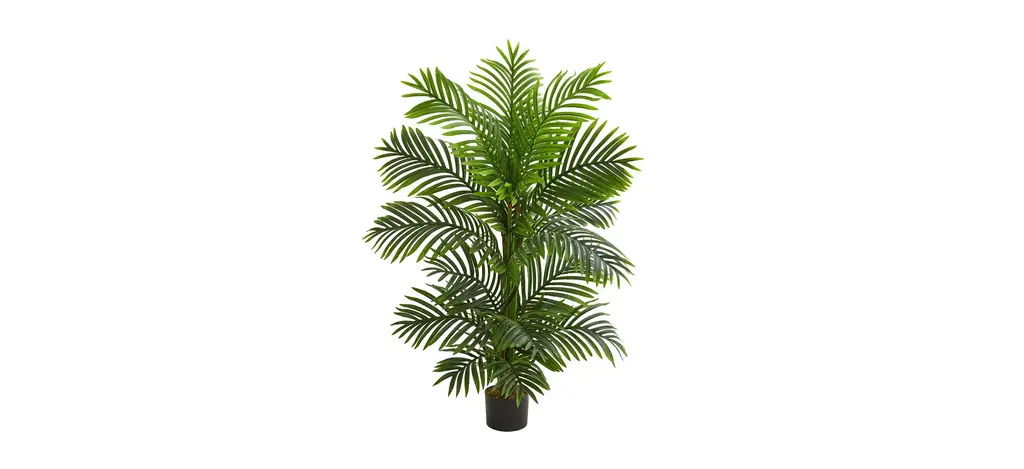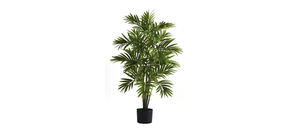 With full, smooth leaves that splay outward from several stalks, this 4 foot Paradise Palm Artificial Tree will add life to any location. With a convenient 4-foot size, realistic looking leaves, and deep green colors; this piece will bring the warmth of the sun and the feel of the tropics indoors.
