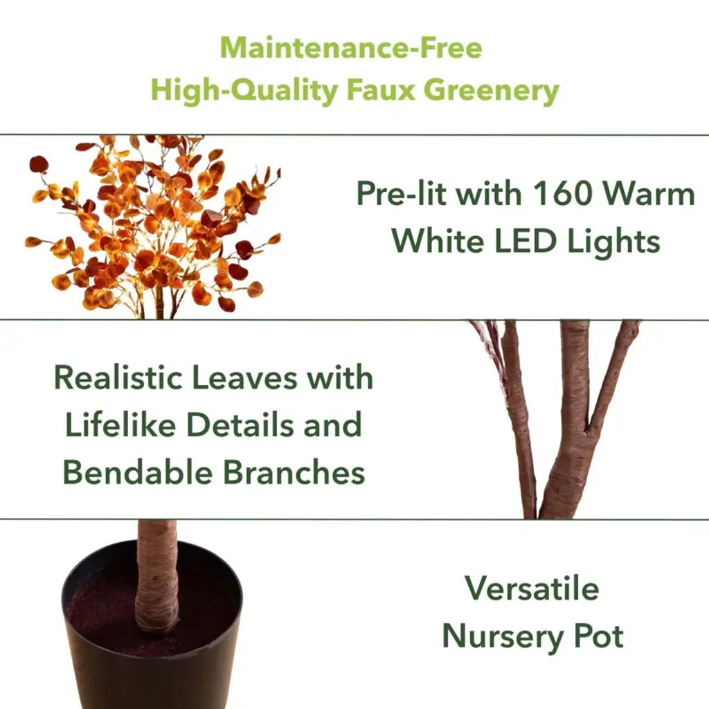 4Ft. Pre-Lit Autumn Eucalyptus Artificial Fall Tree With 160 Warm White Led Lights