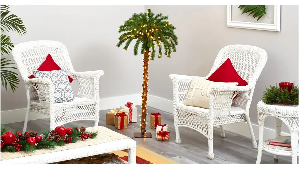 If you're looking to implement a little fun into your holiday Christmas decor why not opt for this festive artificial Christmas Palm Tree. Intricately designed to mimic the beauty of a realistic palm tree, this tropical-inspired artificial Christmas tree features 54 realistic looking tips, illuminated throughout with 150 clear, pre-strung LED lights to eliminate unsightly tangles. Carefully stabilized on a wooden pole and metal base, this 4' artificial Christmas palm tree will undoubtedly create a unique Christmas atmosphere all season long.