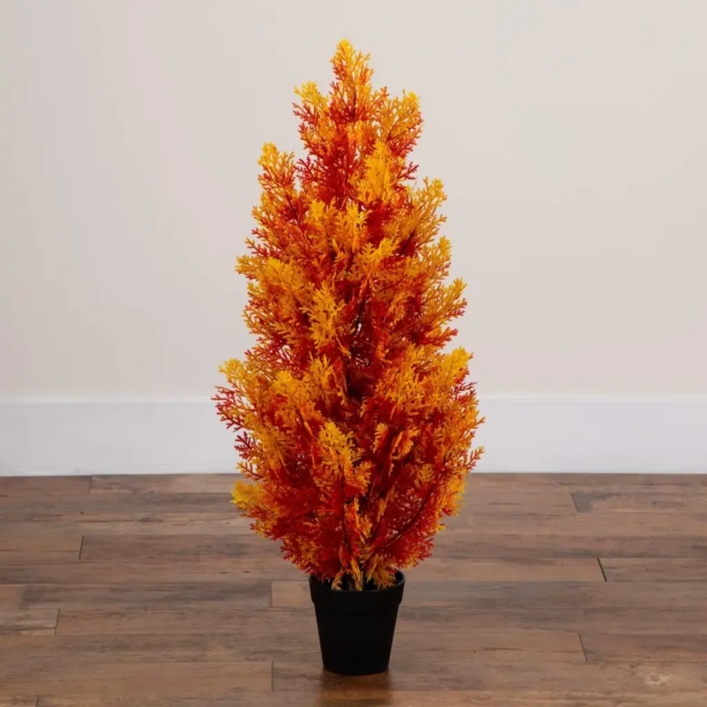 4Ft. Uv Resistant Autumn Artificial Fall Cedar Tree (Indoor/outdoor)