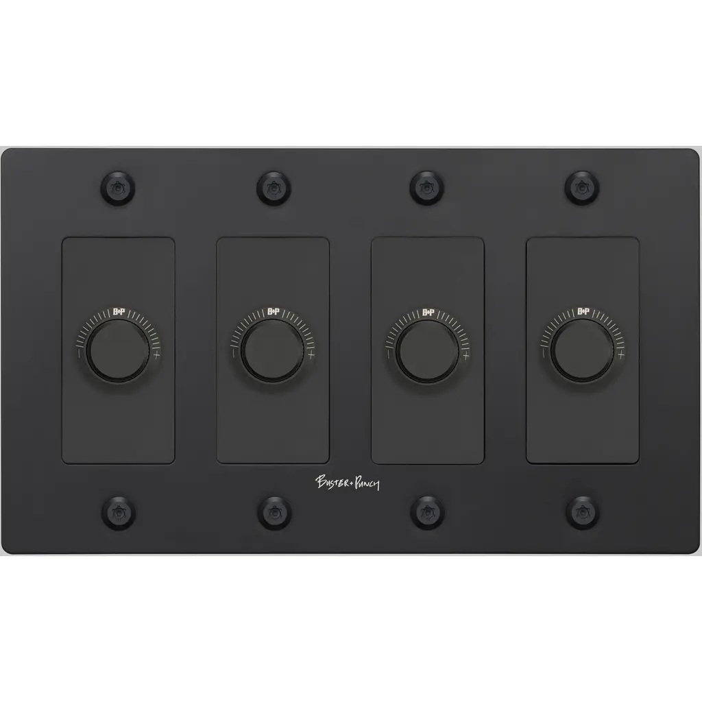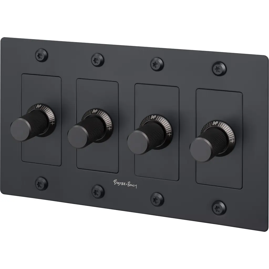 A dimmer switch finished in black. The dimmer knob features our signature, linear knurl pattern and is made from solid black metal.FYI: This piece has a 4 mm shadow gap when installed.