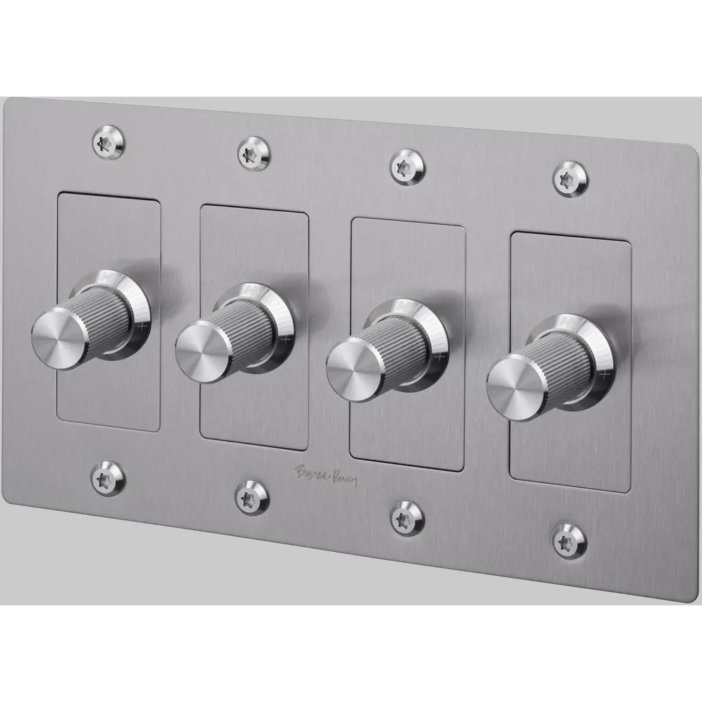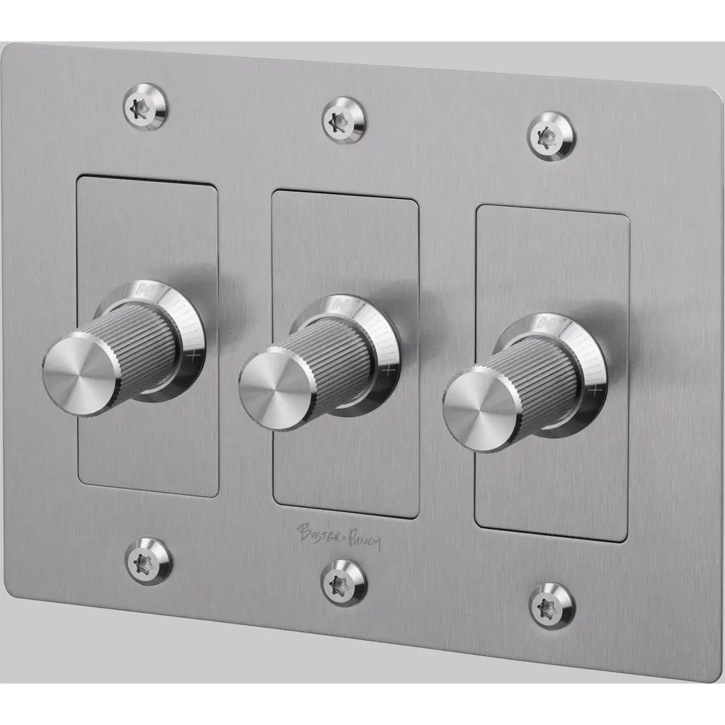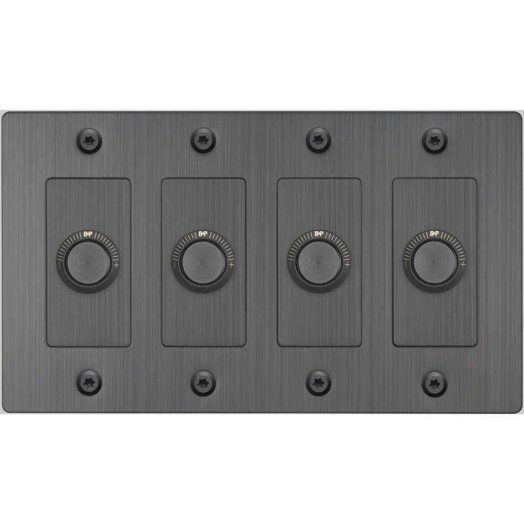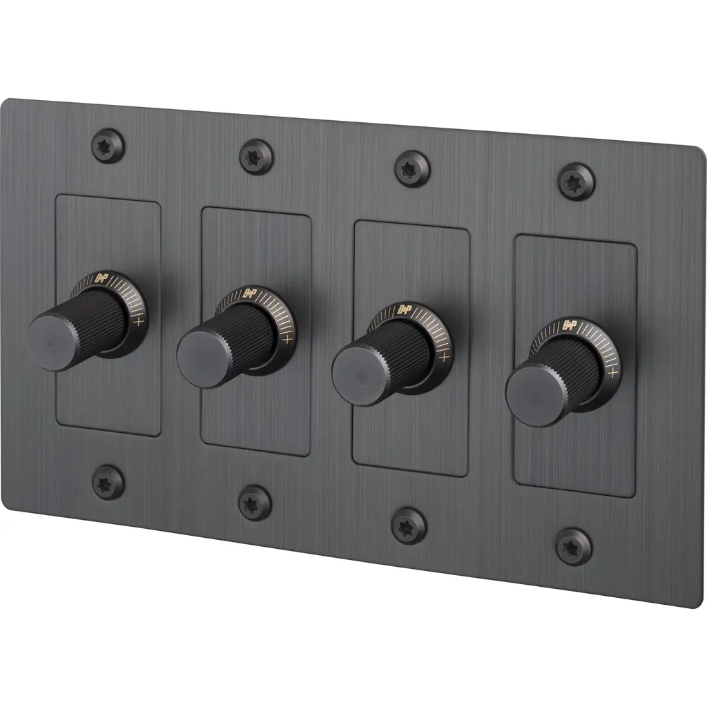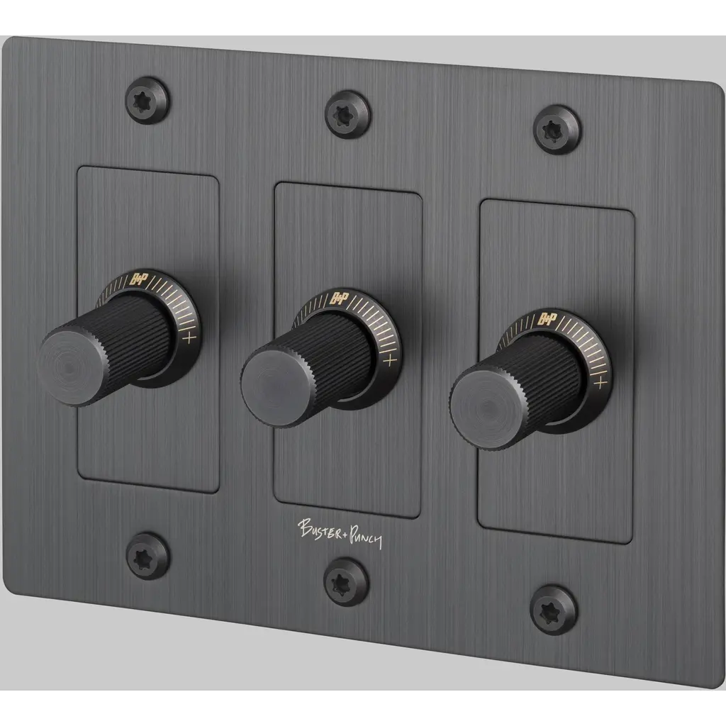 A dimmer switch finished in Smoked Bronze. The dimmer knob features our signature, linear knurl pattern and is made from solid Smoked Bronze metal.FYI: This piece has a 4 mm shadow gap when installed.