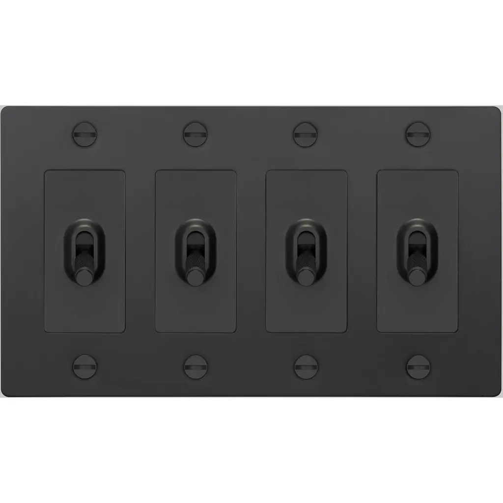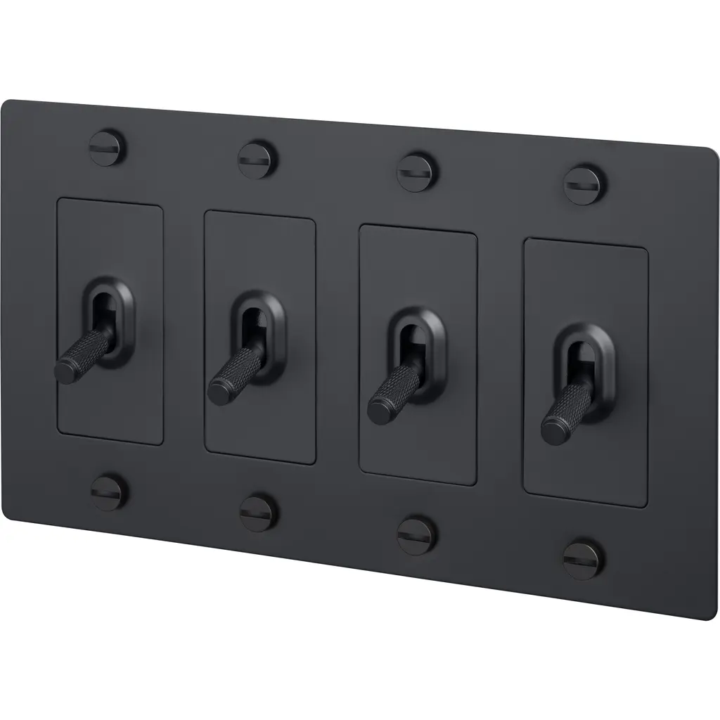 A toggle switch finished in smoked bronze. The toggle arm features our signature, diamond-cut, cross knurl pattern and is made from solid smoked bronze.