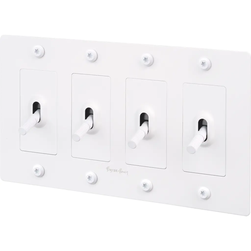 A 4G toggle switch finished in white. The toggle arm features our newest signature, linear knurl pattern and is made from solid white anodised metal.
