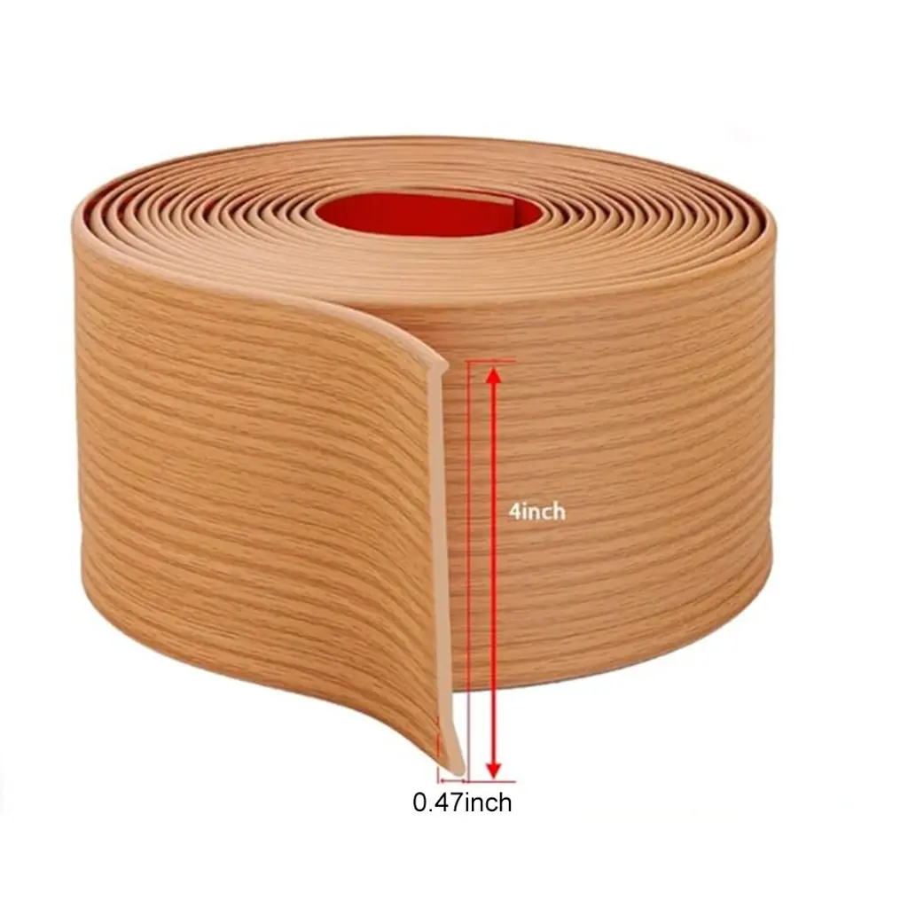 4In X 20ft Self-Adhesive Pvc Flexible Baseboard Moulding Trim - Gray Wood Grain