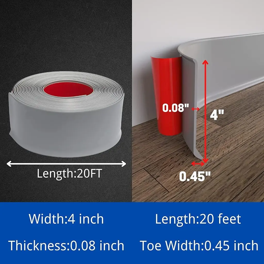 4In X 20ft Self-Adhesive Pvc Flexible Baseboard Moulding Trim - Grey