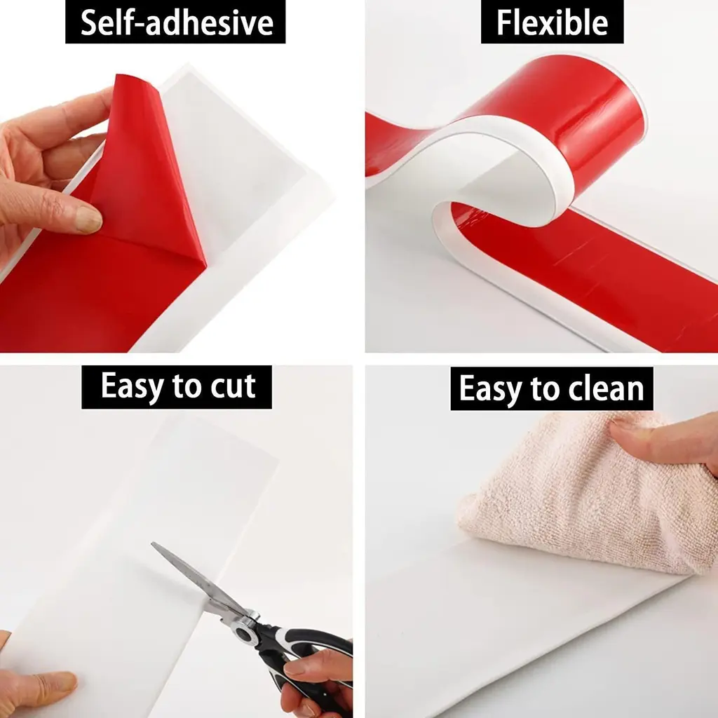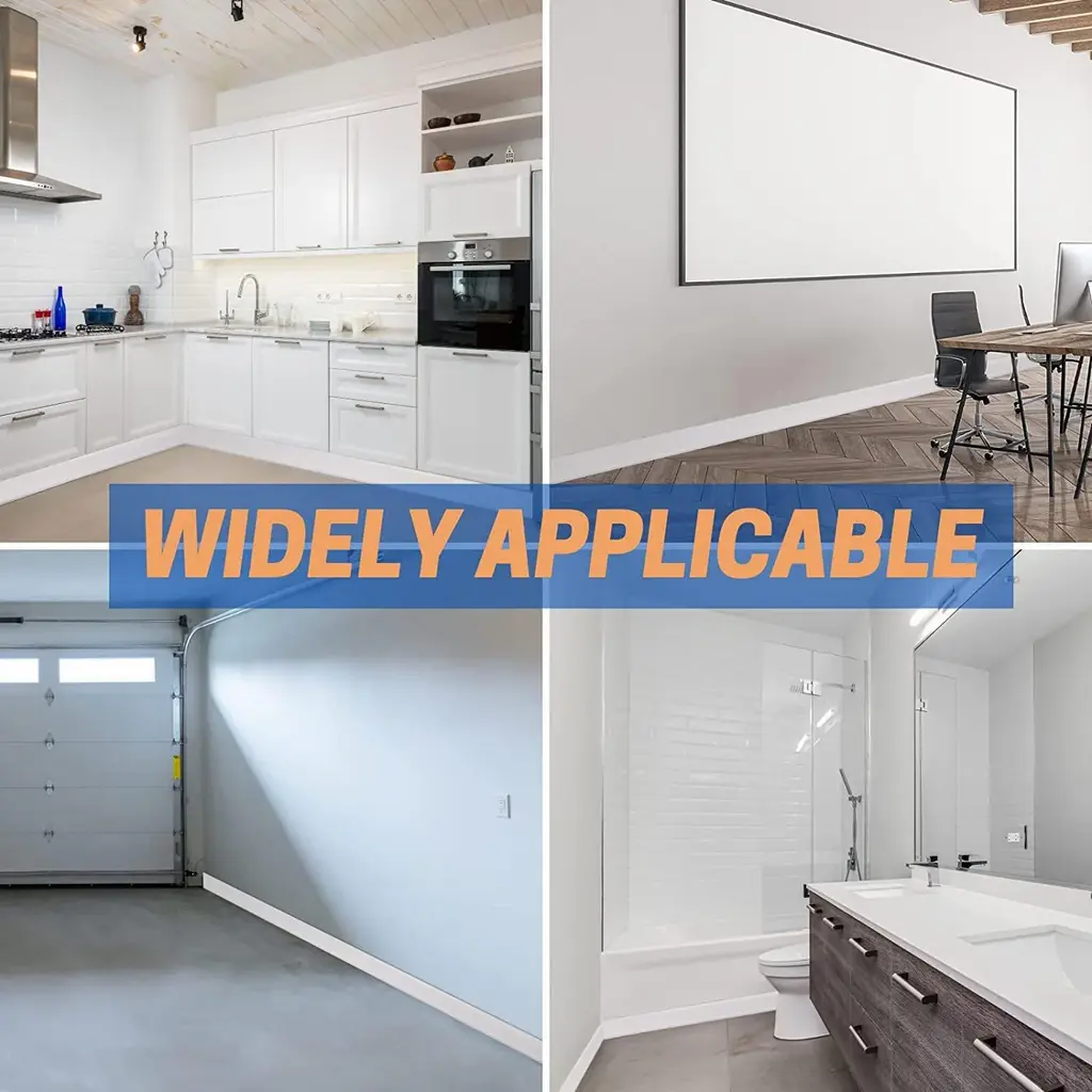 Flexible & Easy to Install - Made from bendable PVC, this baseboard moulding easily conforms to curved walls and uneven surfaces for a seamless fit. No special tools required—just peel and stick for quick installation. Self-Adhesive Backing - Features a strong adhesive layer for hassle-free application. Simply remove the protective film, align, and press firmly for a secure, long-lasting hold. Durable & Waterproof - PVC construction resists moisture, mold, and daily wear, making it ideal for kitchens, bathrooms, and high-traffic areas. Easy to clean with a damp cloth. Sleek White Finish - Provides a smooth, modern look that complements any decor. Perfect for covering gaps between walls and floors while adding a polished touch. Versatile & Trim-to-Fit - Can be cut to any length with scissors or a utility knife. Works on various surfaces, including drywall, tile, and wood—great for DIY home upgrades.