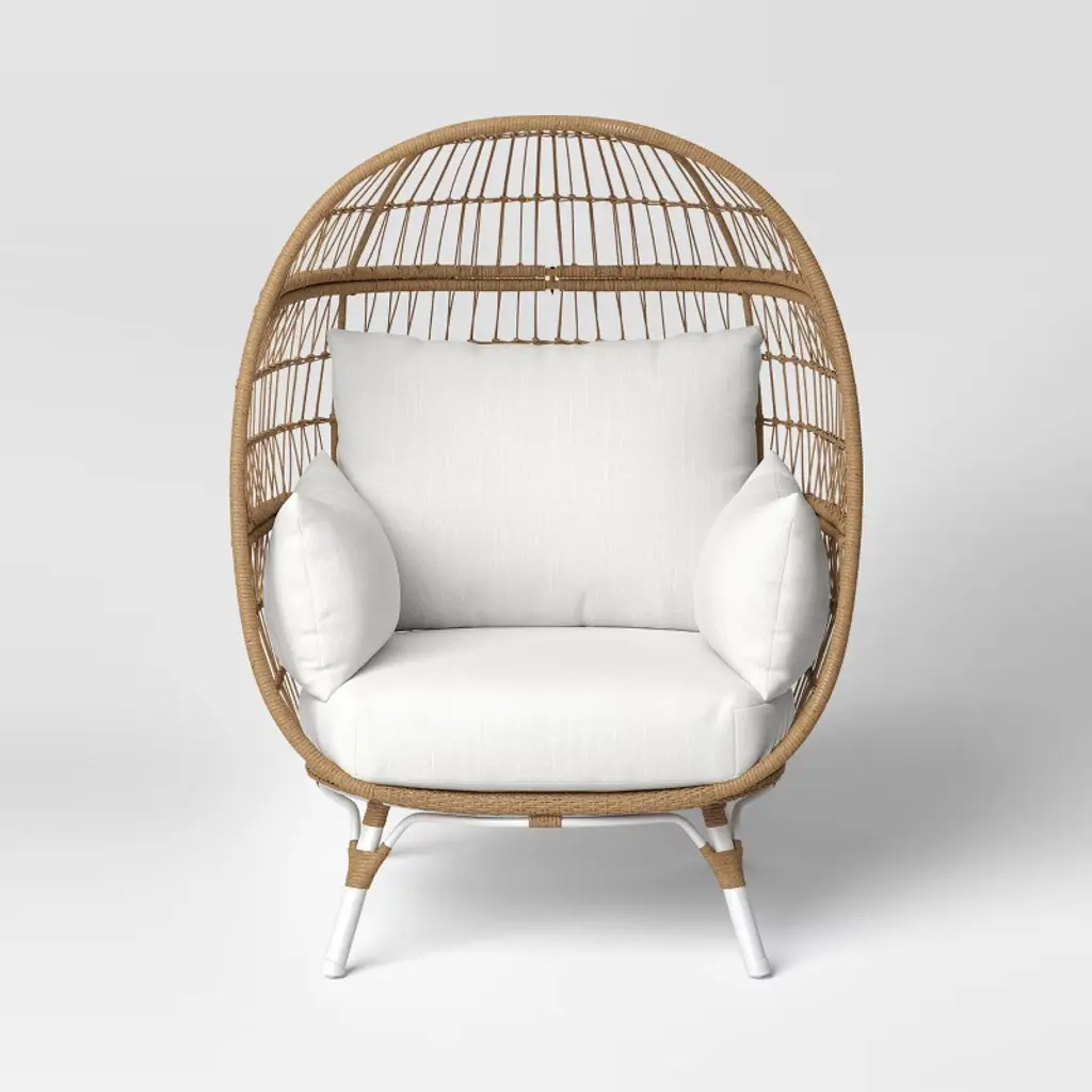 Enhance the comfort level of your patio seating with this 4-Piece Southport Egg Chair Replacement Outdoor Cushion Set from Threshold™. Complete with seat, back and arm cushions, this egg chair cushion set is designed with fade-resistant properties to help keep it looking good as new in any outdoor space. The soft filling offers comfortable lounging and support, and the removable cover with a zipper makes it easy to clean.Threshold™: Looks like home, feels like you.
