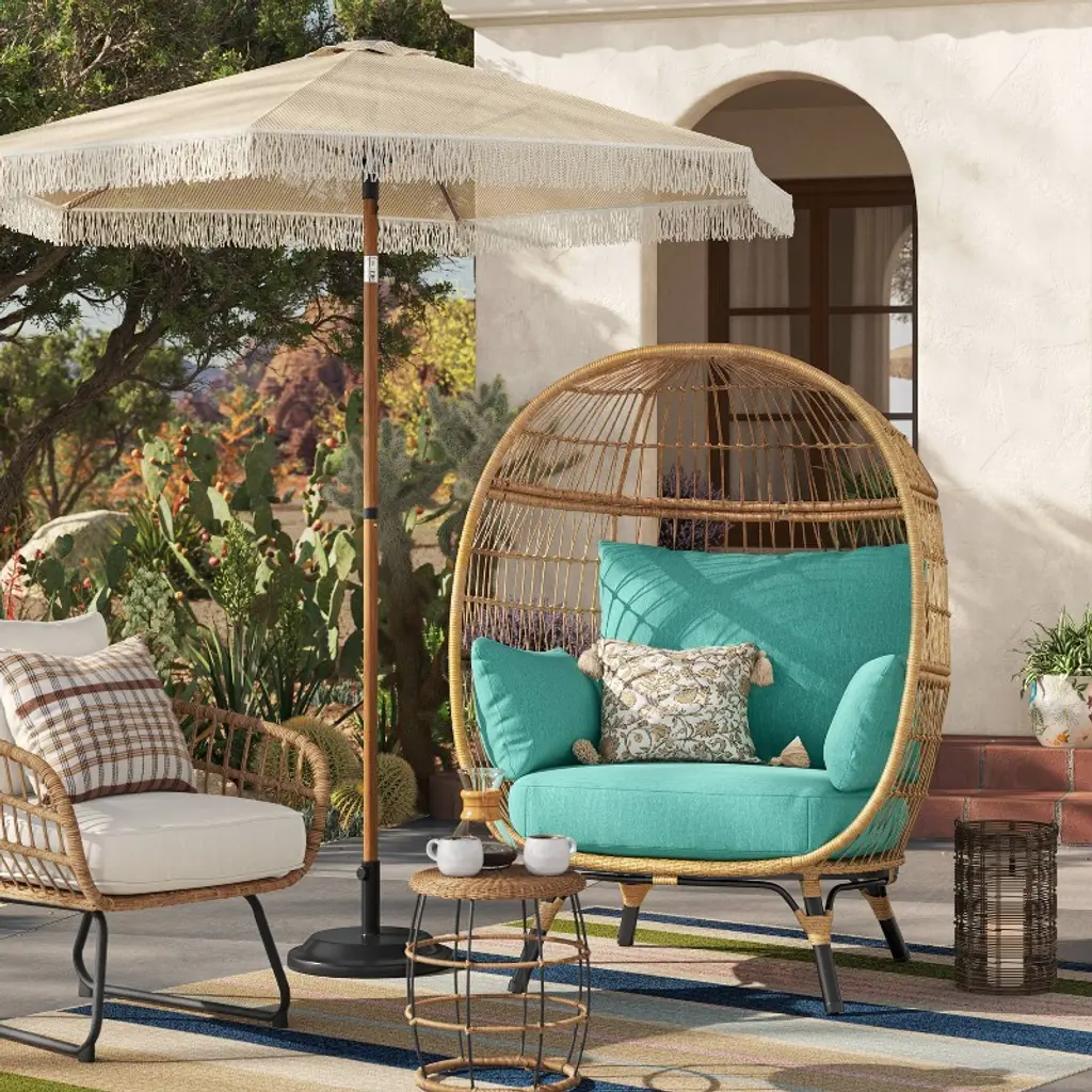 Enhance the comfort level of your patio seating with this 4-Piece Southport Egg Chair Replacement Outdoor Cushion Set from Threshold™. Complete with seat, back and arm cushions, this egg chair cushion set is designed with fade-resistant properties to help keep it looking good as new in any outdoor space. The soft filling offers comfortable lounging and support, and the removable cover with a zipper makes it easy to clean.Threshold™: Looks like home, feels like you.