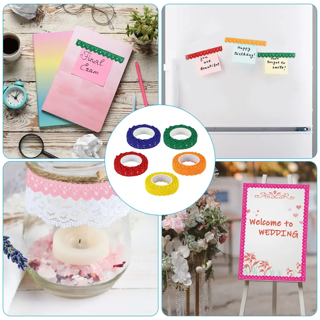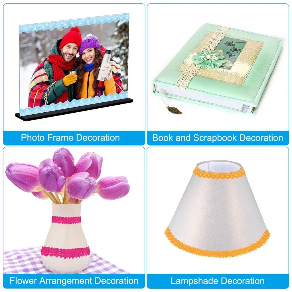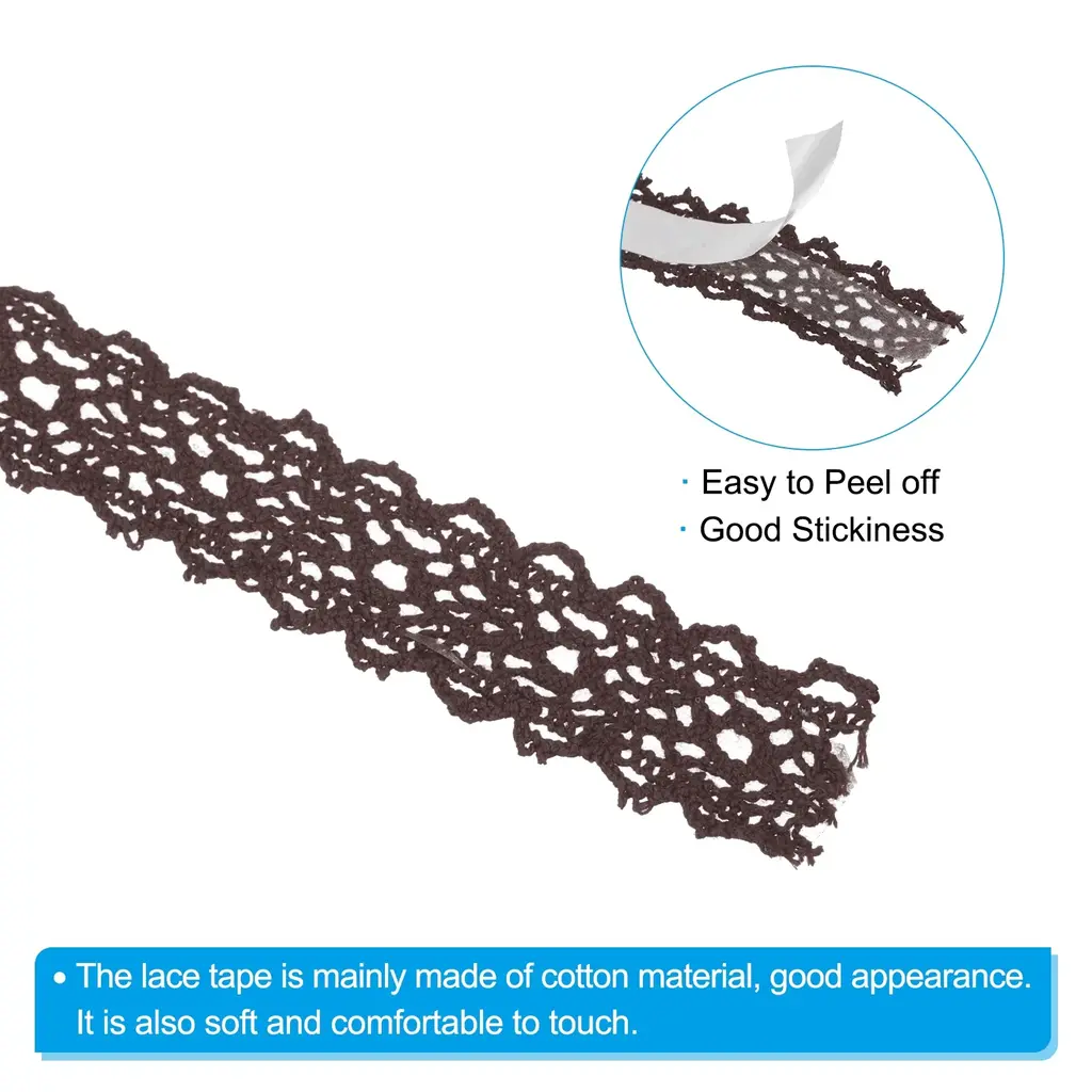 Elevate your crafts to a new level of elegance with our lace washi tape. Lace tapes are perfect for art journals, mixed media art, paper cutting, scrapbooking, diaries, books, interior designers, handmade cards, vision boards, lampshades, notebook covers, gift wrapping and tags, party decorations, photo albums, photo walls, school projects, and other DIY craft projects. These lace washi tapes are designed to meet all your crafting needs.SpecificationColor: CoffeeMaterial: CottonSize: 18mm x 1.83m / 0.7 Inch x 2 YardPacking List: 4 x Self-Adhesive Lace TapeAdvantageThe lace tape is mainly made of cotton material, good appearance. It is also soft and comfortable to touch.Besides, it can be cut into the length and shape you want with scissors.Packed in a roll shape is more convenient to store and carry.Self-Adhesive design, easy to attach to the items.Instruction1. Easy to use, cut it to the length you want.2. Strip the release liner paper.3. Then you can start to decorate.Note: Please check the size you need before purchasing.