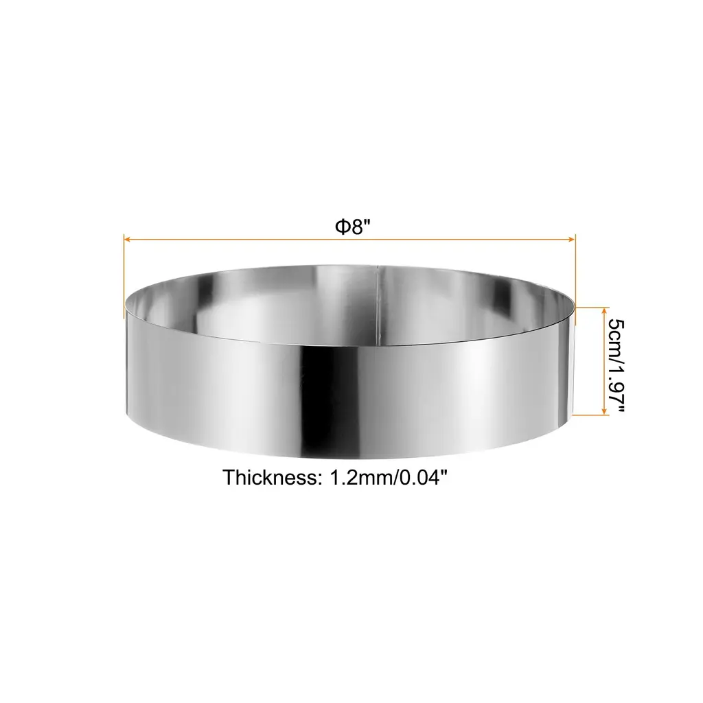 The round cake ring is made of tough stainless steel, which is sturdy and durable, with corrosion, rust, and high-temperature resistance for long-lasting use.The cake ring boasts a polished surface and smooth edges that won't cut your fingers. It's perfect for baking delicious cakes and fit for minimalist decoration.The mousse cake ring is easy to disassemble and clean, making it a convenient and versatile tool for ovens, refrigerators, and microwaves. The cake ring is simple to operate and brings a lot of convenience. It can be directly washed manually, which is more convenient and quick, and can also be used in the dishwasher.Metal cake circle rings are suitable for baking, layering and shaping, and can make round tarts, cakes, mousses, pies, cookies and other desserts, suitable for home, bakery, cake shop or restaurant use.