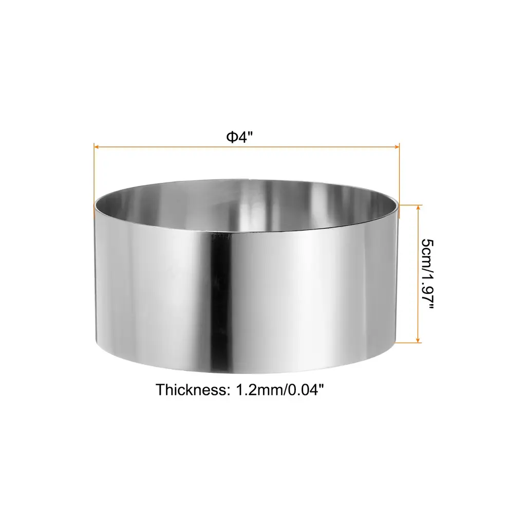 4Pcs Round Cake Ring Stainless Steel Pastry Mousse Dessert Ring - 5 X 2 Inch