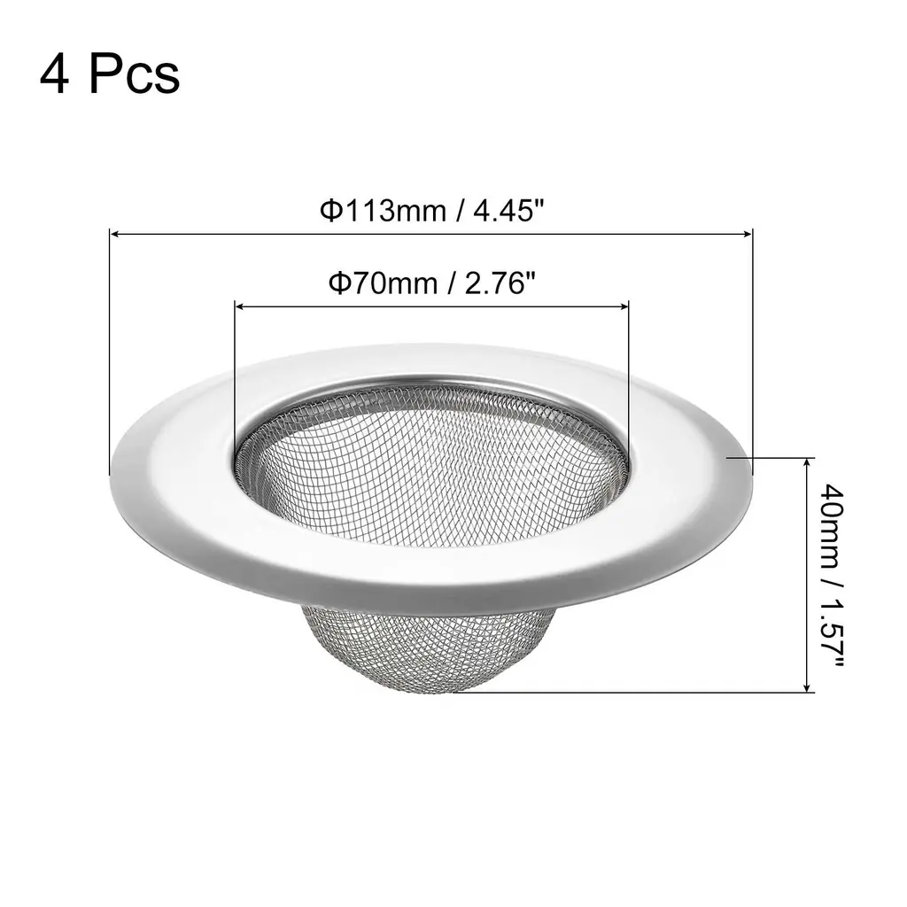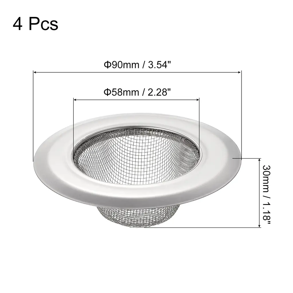 4Pcs Stainless Steel Kitchen Sink Strainer, Silver - 2.09" X 1.38" X 0.87"