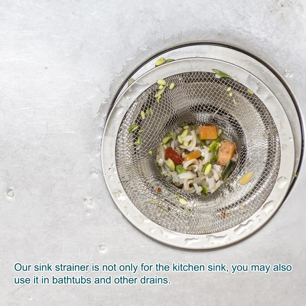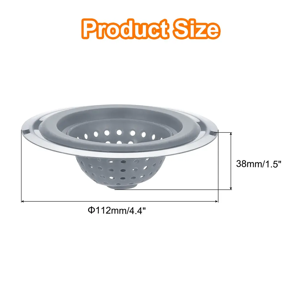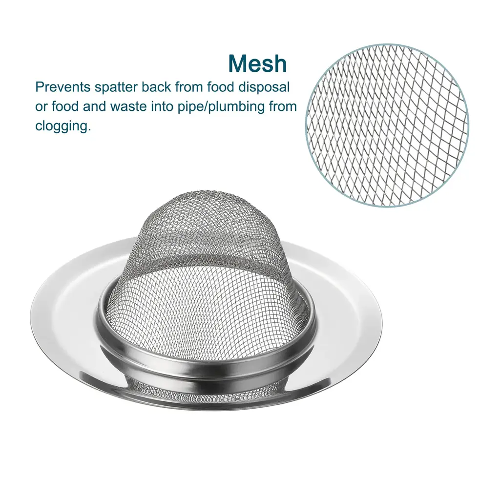 Description:Material: Our kitchen sink strainer is made of stainless steel construction, corrosion-resistant, rust-proof, more durable, and non-deformation.Mesh: Prevents spatter back from food disposal or food and waste into pipe/plumbing from clogging; Also can be used as a drain stopper to hold water in the sink for washing or keep kitchenware from going down the drain.Easy to Clean: Easy and installation and use, remove from sink for easy cleaning with warm water and soap to keep the shine for years.Use: Our sink strainer is not only for the kitchen sink, you may also use it in bathtubs and other drainsSpecification:Outer Diameter: 113mm/4.45"Inner Diameter: 70mm/2.76"Depth: 40mm/1.57"