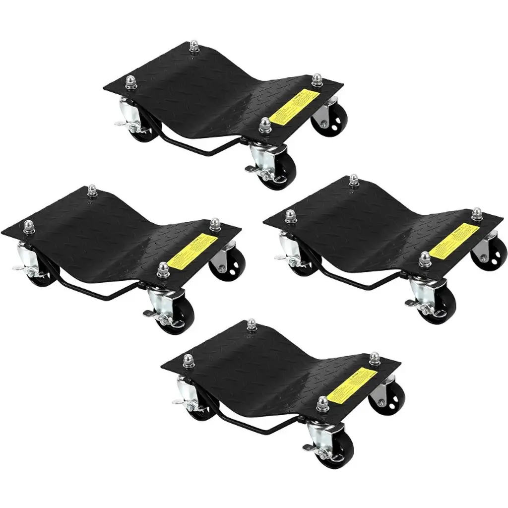4Pcs Wheel Dolly Set For Cars, Trucks, Trailers, Suvs, 8000lbs Metal Vehicle Wheel Carts With Brakes For Garage, Maintenance, Tire Changes, Black