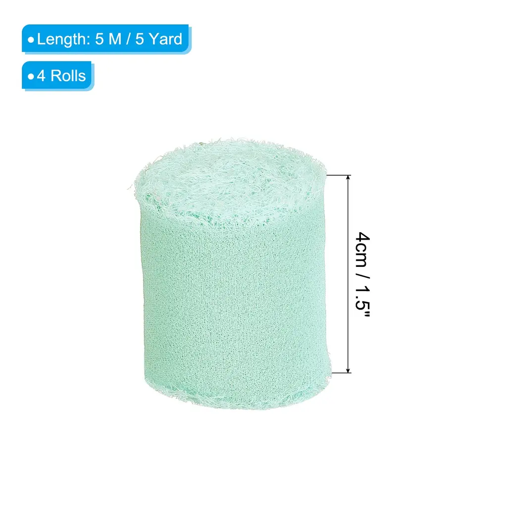 4Roll 1.5"x5yd Fringe Chiffon Silk Ribbon Handmade Frayed Edges Ribbon - 1.5" X 5 Yard - Blue
