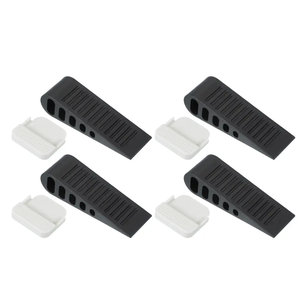 4Set Rubber Door Stopper Wedge Door Stops For Bottom Of Door With Holder - Black