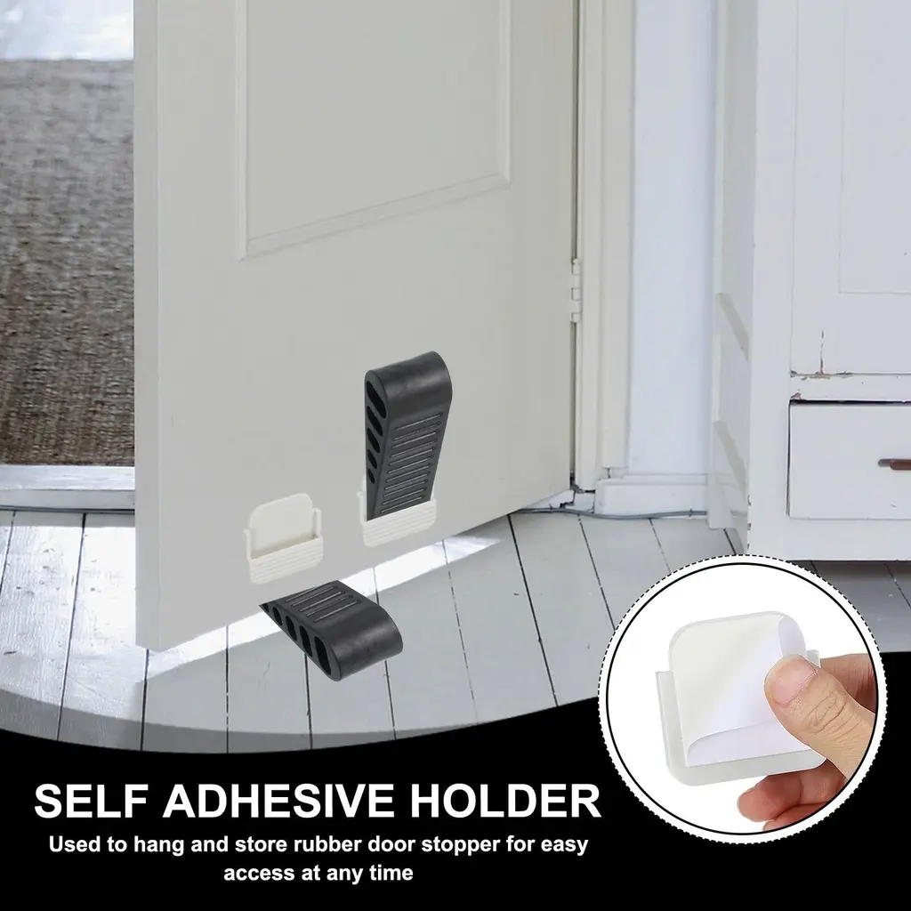 The rubber door stops offer a secure hold on various floor surfaces, including wood, carpet, cement, tile, and stone. These versatile tools effectively keep doors open while adding a touch of practical elegance to any space.SpecificationColor: BlackMaterial: TPRDoorstop Size: 12.6 x 4 x 3 cm / 4.96 x 1.57 x 1.18 Inch (L*W*H)Holder Size: 5 x 4.8 x 1 cm / 1.97 x 1.89 x 0.39 Inch (L*W*H)Packing List: 4 Pcs x Door Stop for Bottom of Door, 4 Pcs x Holder Advantages[Sturdy Rubber] The door stop wedges are crafted from TPR material, ensuring reliability, reusability, and non-slip. Suppleness structure with scientific arched holes, effectively preventing doors from closing due to a breeze and helping prevent cats and dogs from accidentally pushing the door closed.[Silent & Convenient Storage] With a unique wedge-sloped design, these rubber door stops offer excellent grip without scratching floors, walls, or doors. They provide effective noise reduction and come with a self-adhesive holder for easy hanging and storage, keeping your space organized and the doorstop readily accessible.InstructionEasy to use and store. Place it at the bottom of your door and let the wedge get stuck without the need for drilling holes or using adhesive tape. You can store the door stoppers in the holder when not in use.NOTE: Before choosing our products, please confirm whether the size you need is suitable.