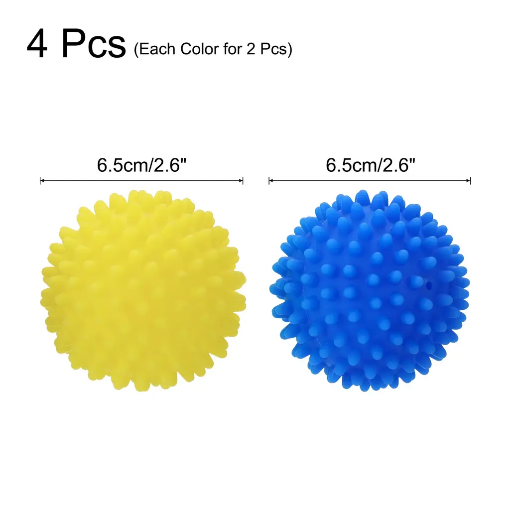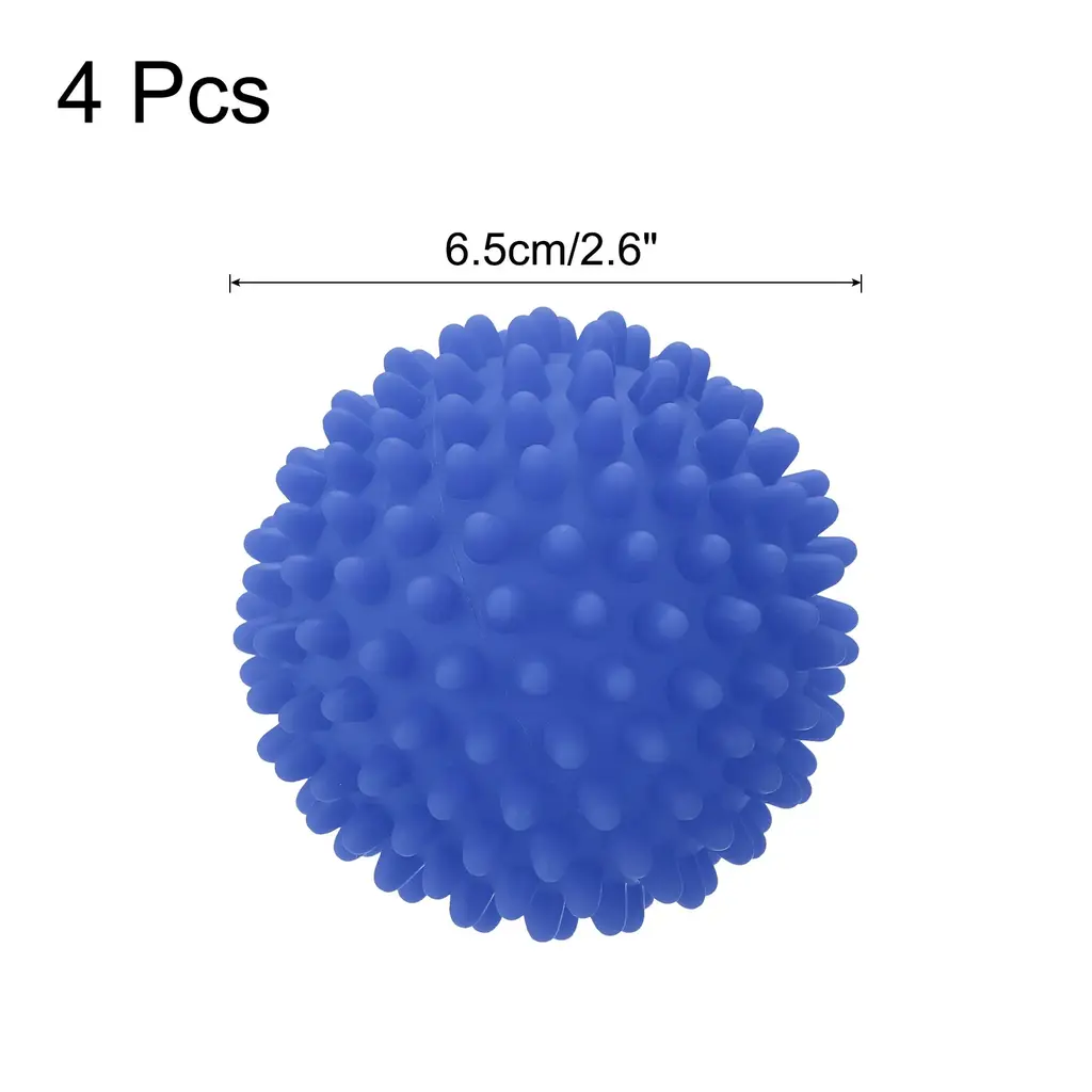 Description:[Material]- These laundry dryer balls are made of soft salted vinyl, which is durable and long-lasting, ensuring that the dryer balls can be used for multiple laundry cycles.[Design]- The reduce wrinkles dryer balls are designed to be anti-static to traditional dryer sheets, helping to reduce static cling and wrinkles in your clothes, and also help to soften fabrics and reduce drying time, ultimately saving on energy costs.[Easy to Use]- Simply place the dryer balls in the dryer with all the laundry that needs drying, and run the drying cycle as normal. The dryer balls will bounce around in the dryer, separating and softening your clothes for more efficient drying.[Wide Application]- These drying balls are perfect for use in any household that does laundry regularly, whether it's for everyday clothing or delicate fabrics that require gentle drying.[Note]- Please note that this dryer ball cannot absorb hair and remove lint.Specification:Material: Soft Salted VinylColor: BlueDryer Ball Diameter: 6.5cm/2.6"Package Included: 4pcs x dryer balls
