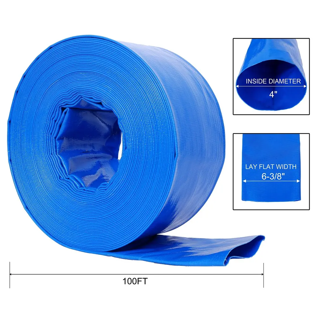 Experience unmatched durability and performance with this 4-inch, 100-foot heavy-duty backwash and discharge hose. Crafted from premium PVC and reinforced with 3-ply polyester yarn, it resists abrasion, corrosion, and harsh weather. Supporting up to 90 PSI and temperatures from 23°F to 149°F, it's ideal for pool maintenance, irrigation, mining, and construction. Easy to roll and store, it delivers year-round reliability and professional-grade utility. Features: Backwash and Discharge HoseDiameter: 4 inches Flat Width: 6.4 in Length: 100 feet Working Pressure: 90 PSI Temperature Range: 23°F to 149°F (-5°C to 65°C. Easy to UseThis hose is perfect for both in-ground and above-ground pools. It easily fits over a 3" or smaller filter outlet. After use, simply roll it flat for storage in a dry, cool place, away from direct sunlight. Durable, High-Quality MaterialMade from heavy-duty PVC, this hose is resistant to abrasions, corrosion, and weather conditions. The 3-ply polyester yarn reinforcement ensures durability, preventing leaks and tears for long-term use. Wide Applications: The heavy-duty backwash hose, due to its excellent quality and portability, is widely used for draining swimming pool, filter clean-out, fluid pumping, and draining for industry farm irrigation, quarry, mining, and construction applications, etc. All-Season Reliability:Built to withstand outdoor conditions year-round. Grass catcher included with the reel lawn mower. The lawn mower can operate with or without the grass catcher and is easy to install or remove. Since reel mowers cut blades of grass like scissors there is little force behind the cut grass so not all grass clippings will be captured in the bag. Specifications: Main Color: Blue Main Material: PVC Package includes: 1 * Pool Backwash Hose 1 * Manual Notes: 1.Manual measurement has been used, there may be some reasonable error 2.All the pictures are taken by actual samples, slight chromatic aberration may occur due to lighting or display