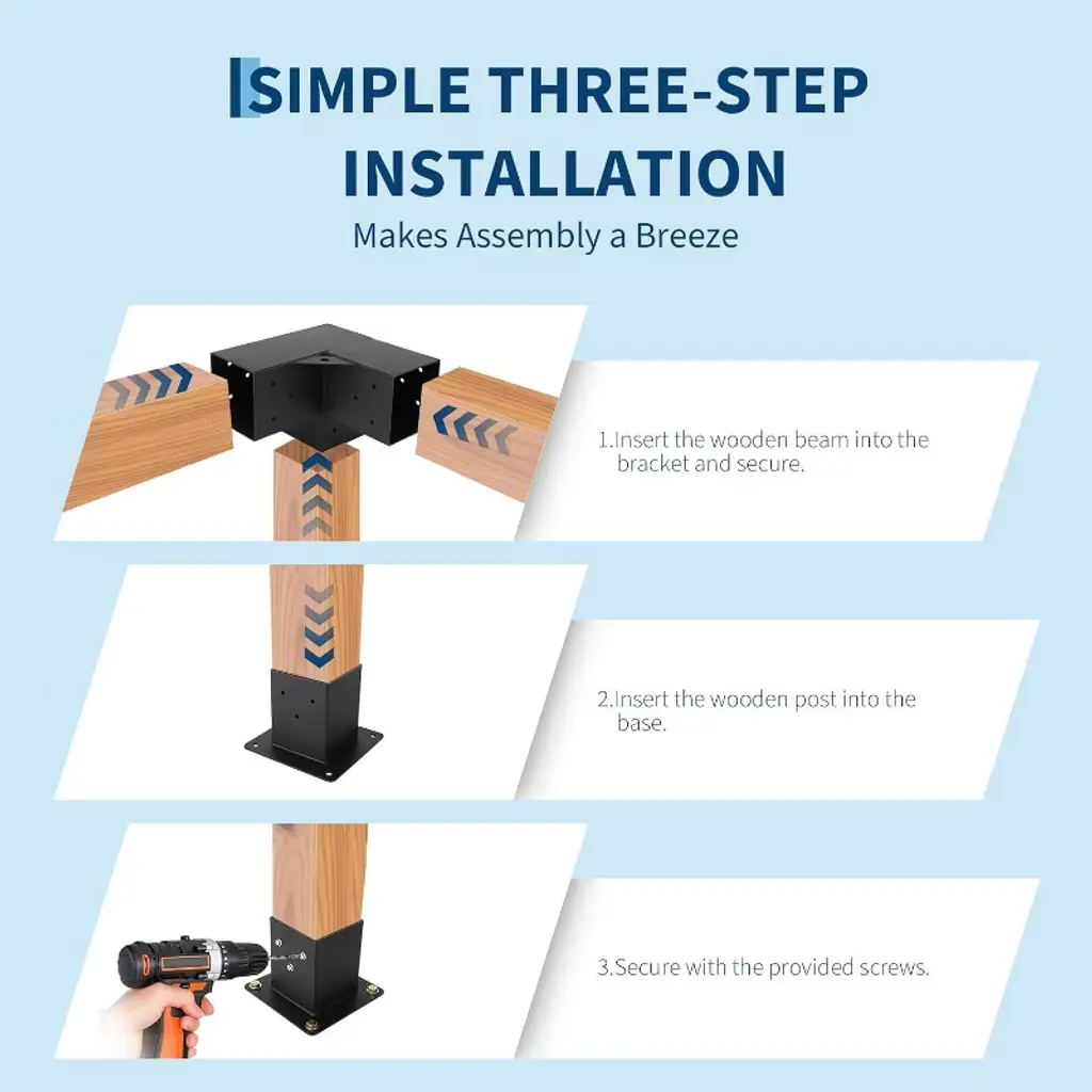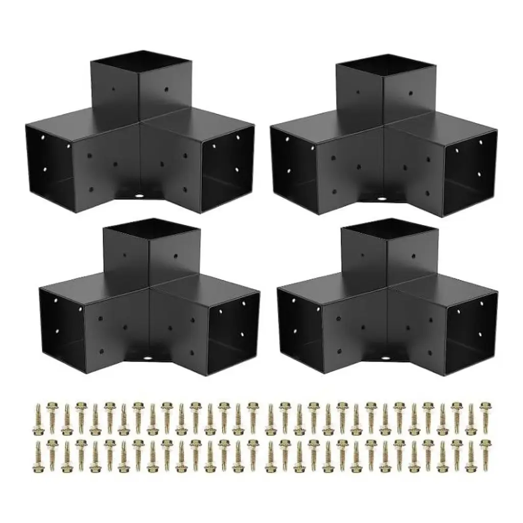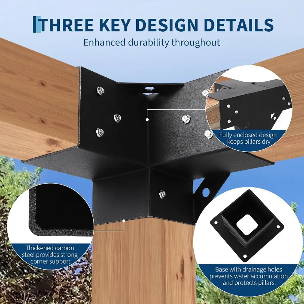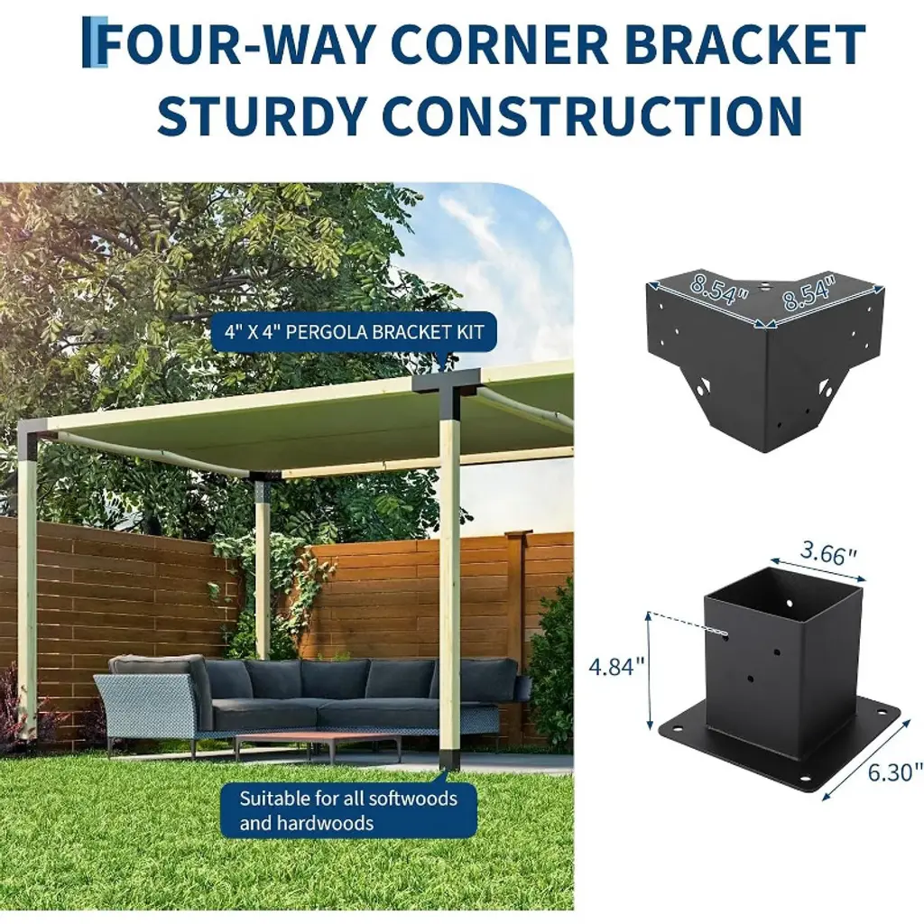 4"x4" Pergola Kit,Heavy-Duty Carbon Steel Gazebo Hardware with 4-Way Brackets, Perfect for Outdoor Patio, Pergola & Cabin Construction