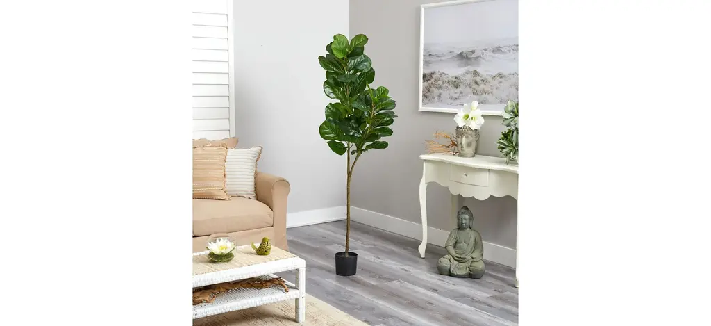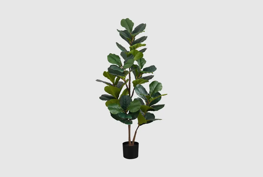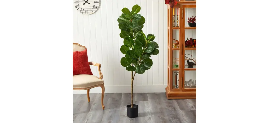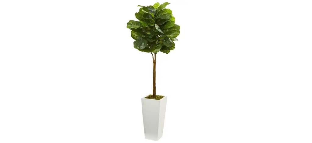 Two different sized stems - showcase large, glossy Fiddle Leaf leaves that look incredibly lifelike in the Fiddle Leaf Fig Artificial Tree. Trick all your friends into thinking that you can grow a Fiddle Leaf Fig in any indoor area. Standing 5 1/2' from a planter (included in height), curate in tight spaces. Perfect for an apartment, bathroom, foyer, awkward corner, or bedroom.