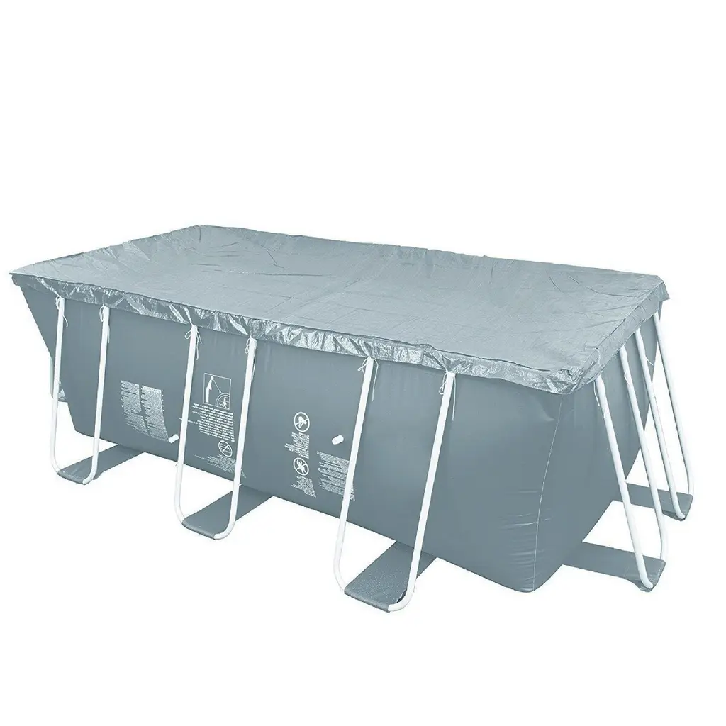 Prevent leaves and other unwanted debris from falling into your pool with this cover. It is an inevitable investment for every pool owner. A good quality pool cover may be all you need to warm your pool water and make your pool more enjoyable. Product Features: Gray rectangular pool cover with rope ties Rope ties help keep the cover in place Holes in the center of the cover allow for water drainage Recommended for outdoor use only Dimensions: 12.6' long x 5.9' wide steel frame pool: 48"H x 5'W x 12'D Material(s): vinyl/rope Note: Cover is designed for Jilong pools may not be compatible with other brands Listing is for the cover only pool not included