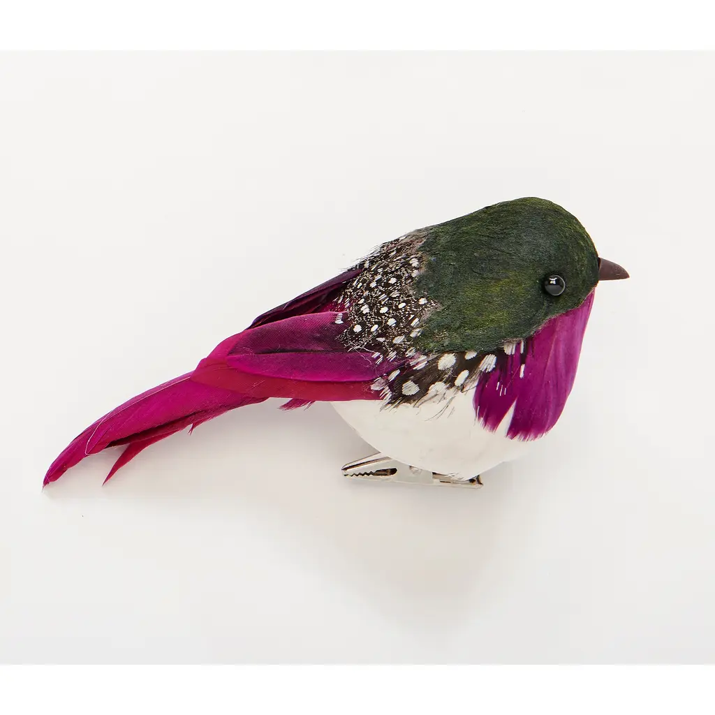 Enhance your décor with this delightful 5" Feathered Bird with Metal Clip. Crafted from real feathers, this charming bird adds a touch of natural elegance to any display. Its metal clip at the bottom makes it easy to attach to wreaths, garlands, or floral arrangements, allowing for versatile decoration options. Whether used as a festive accent for the holidays or incorporated into everyday décor, this feathered bird is sure to captivate with its lifelike texture and graceful presence.