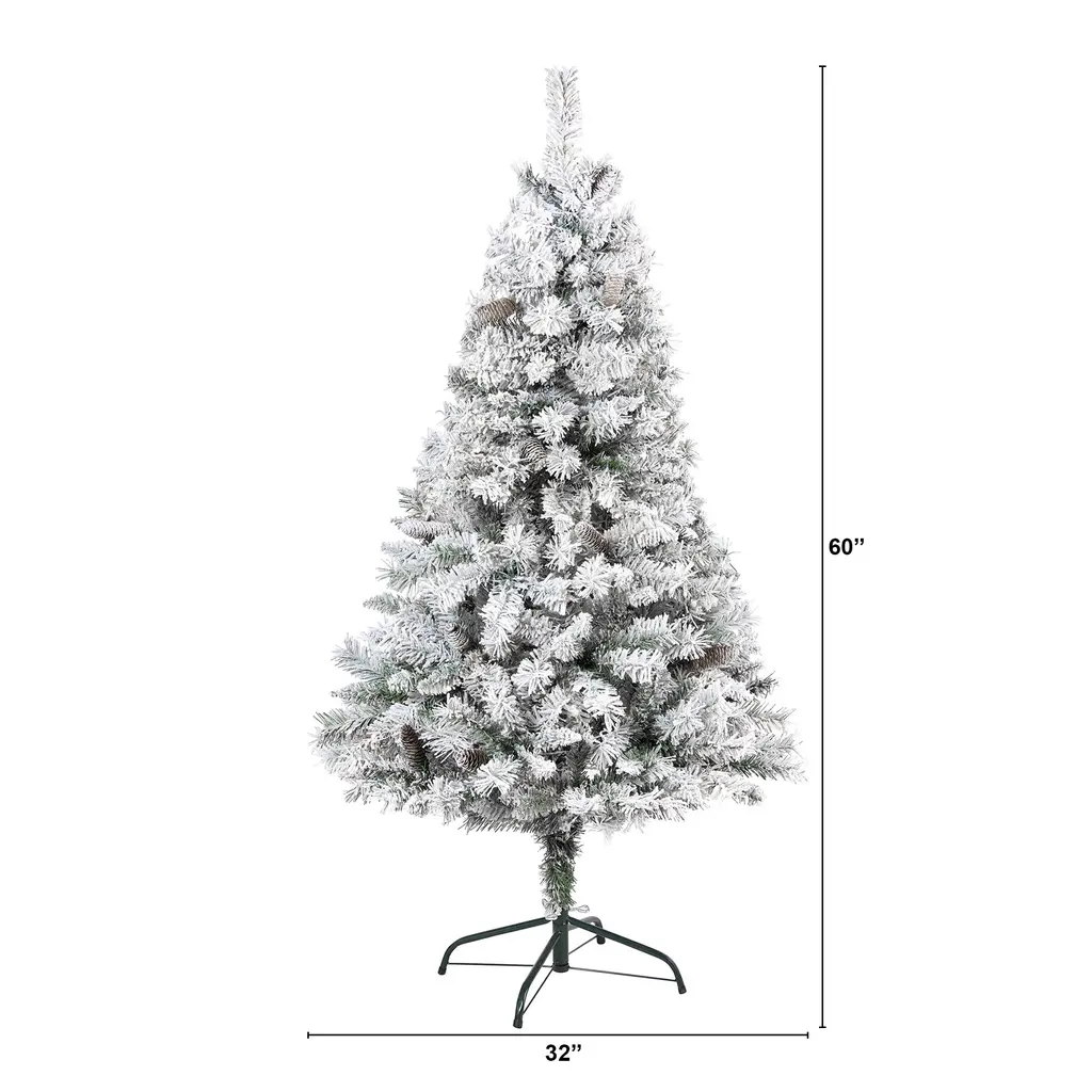Complete a traditional Christmas setting this holiday with the help of this Flocked White River Mountain Pine Artificial Christmas Tree. Easy to set-up and entirely maintenance-free, this winter-inspired Christmas tree boasts a robust collection of realistic looking foliage consisting of 360 easy-to-bend branches for showcasing holiday accents and accented throughout with faux pinecones that look incredibly realistic. Finished with a light frosting of faux snow, it's guaranteed to create a picturesque Christmas wherever displayed. Carefully stabilized on an accompanying stand, this versatile 5' tall frosted artificial Christmas tree will undoubtedly transform any home or office into a joyous holiday setting for years to come.