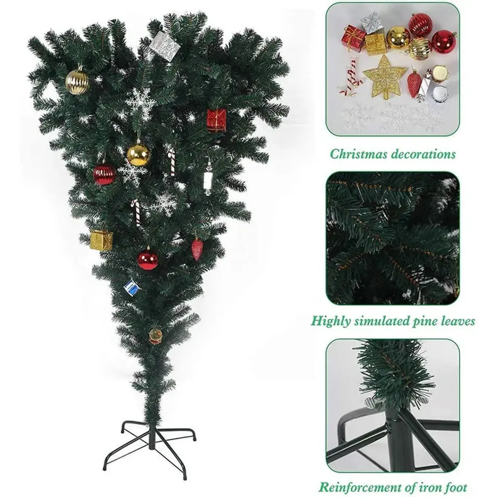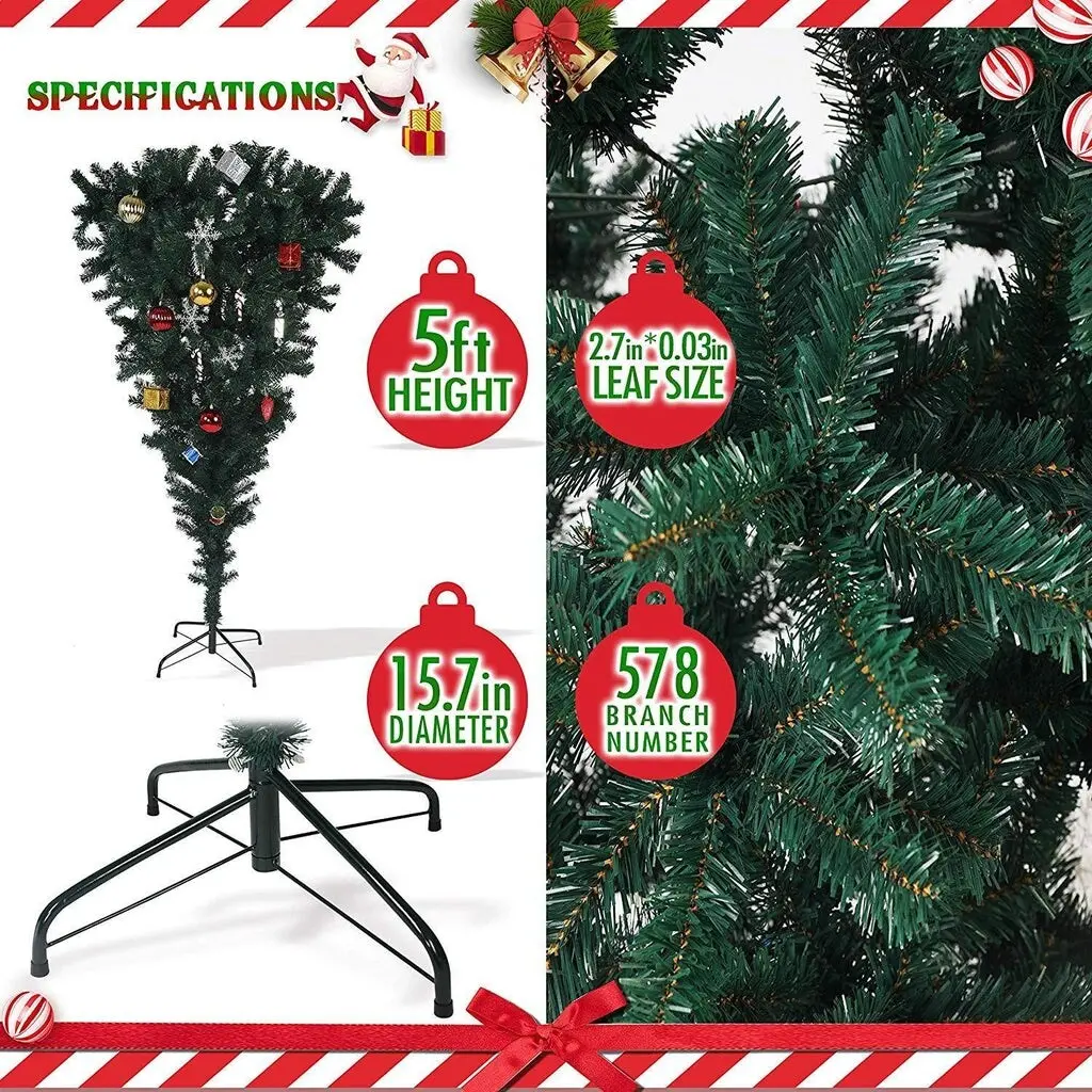 5 Ft Upsidedown Artificial Christmas Tree With Solid Metal Stand - 5 Ft - Green
