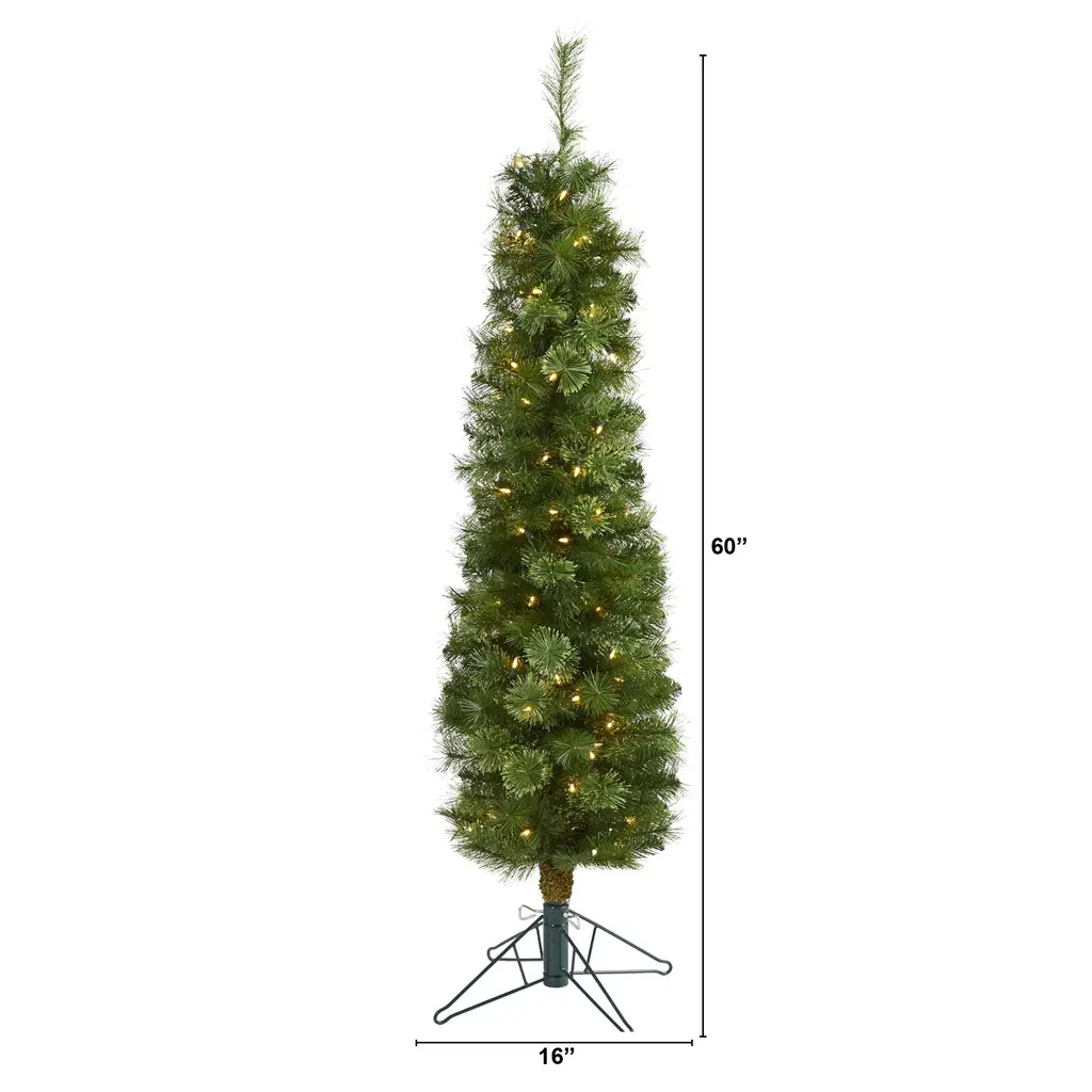5' Green Pencil Christmas Tree With 100 Clear Led Lights - Green