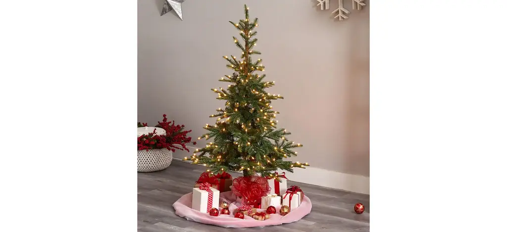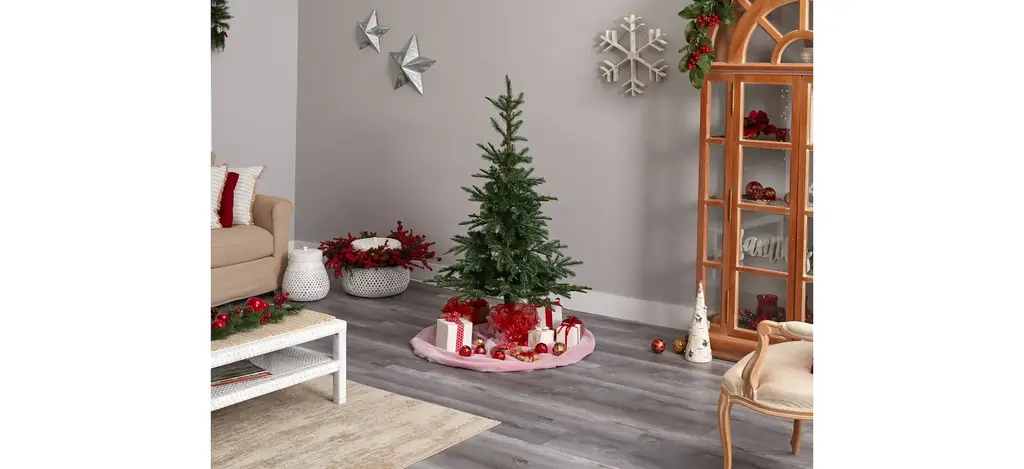 Bring the outdoors in, literally, with the rustic, natural looking 5' Layered Washington Spruce Artificial Tree, Layered . Sparse by design with spacious gaps that allow you to showcase your favorite ornaments.