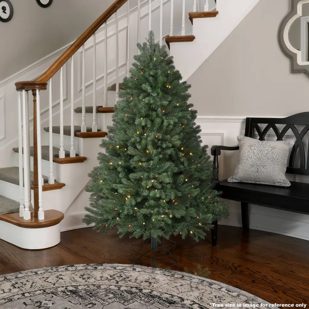 Add a joyful touch to your home this holiday with a luxurious 5' LED Colorado Spruce Tree. This enchanting tree features 565 lifelike branch tips and a 40" diameter, creating a full and vibrant look that's perfect for your holiday decor. Adorned with 350 energy-efficient LED multi-colored lights, the Colorado Spruce Tree emits a warm, inviting glow, adding a magical ambiance to your celebrations. Recommended care store in a cool, dry place for many years of use. Enjoy the beauty of nature wherever you go!