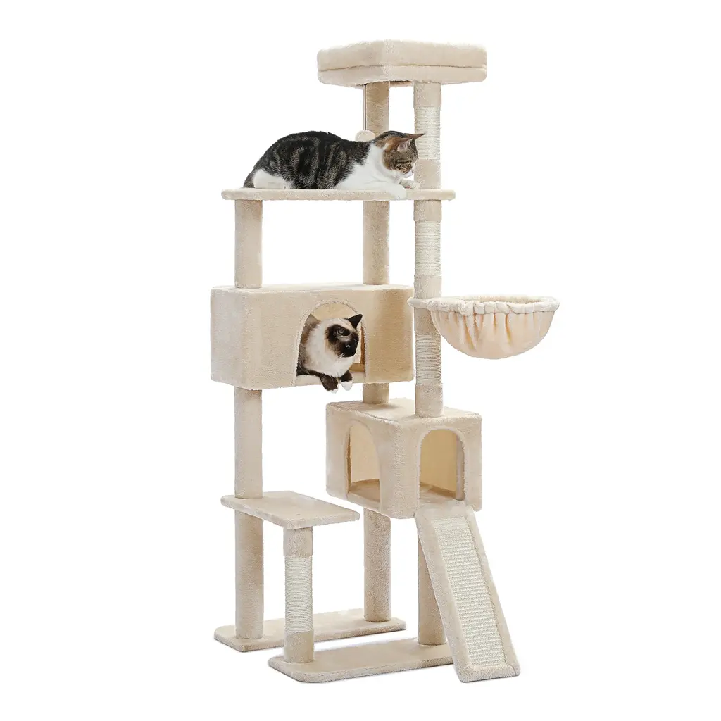 5-Level Cat Tree With Hammock, Condo, Top Perch & 4 Scratching Post - Beige