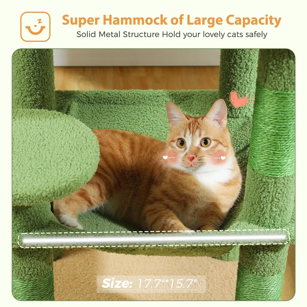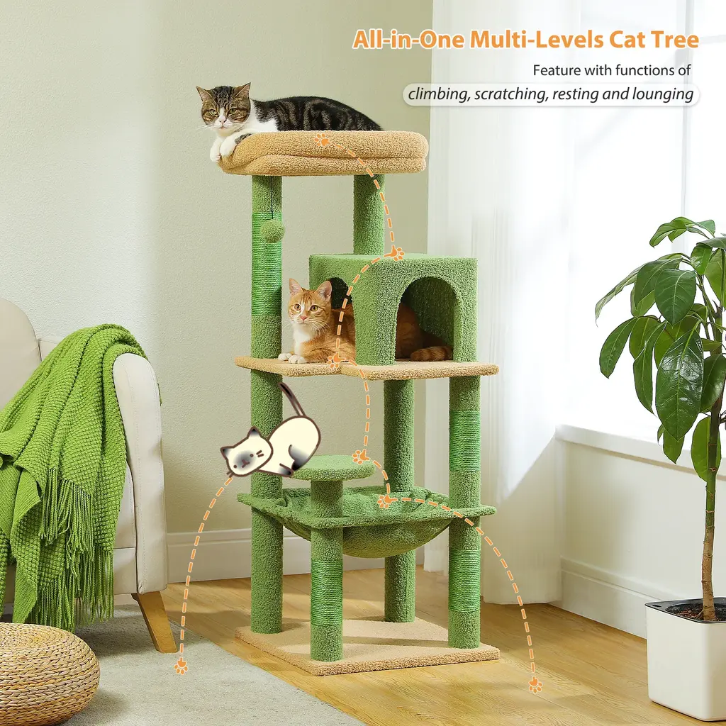 5-Level Cat Tree With Hammock, Condo, Top Perch & 4 Scratching Post - Green