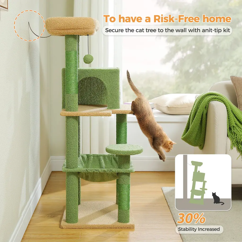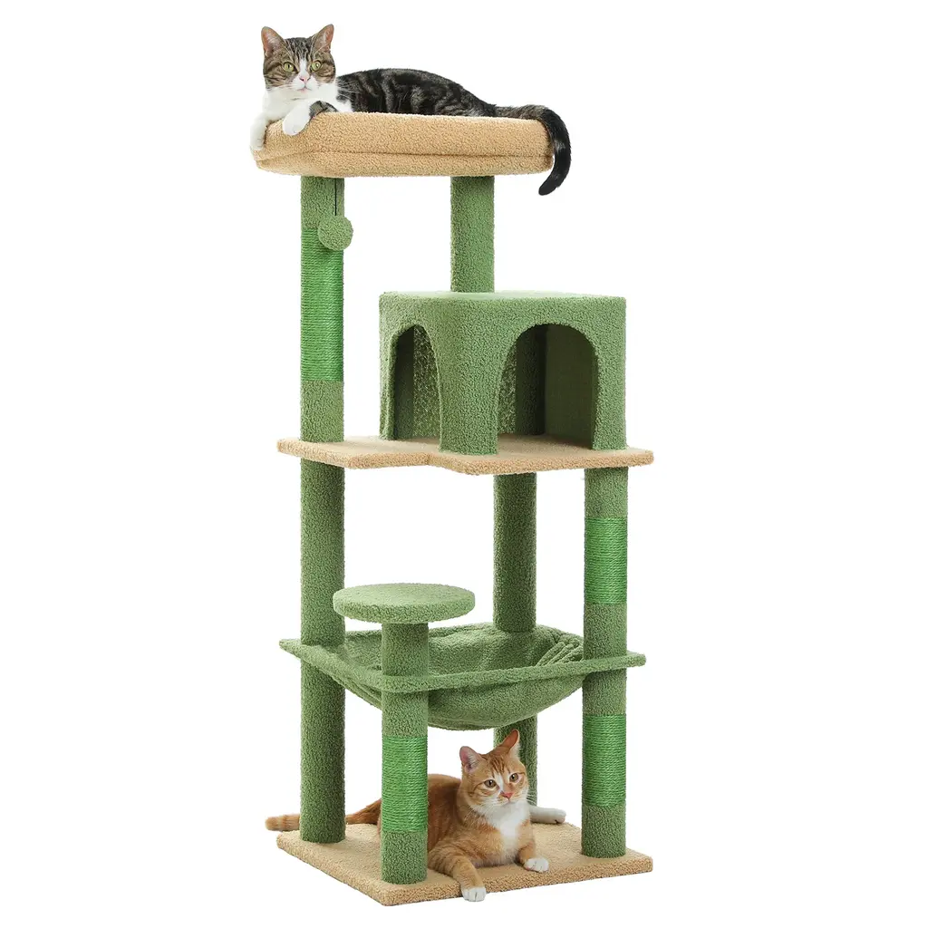 5-Level Cat Tree With Hammock, Condo, Top Perch & 4 Scratching Post - Green