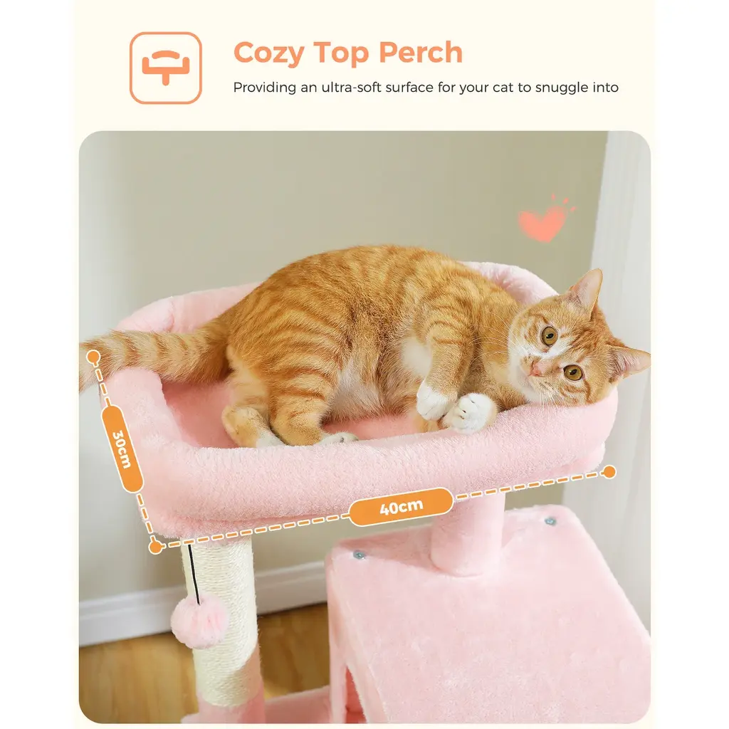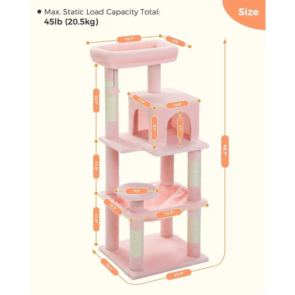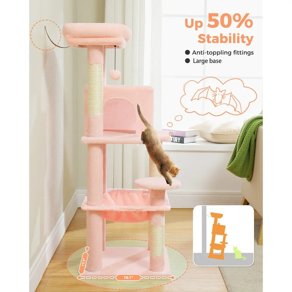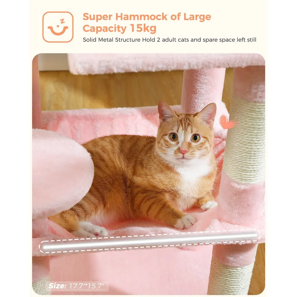 5-Level Cat Tree With Hammock, Condo, Top Perch & 4 Scratching Post - Pink