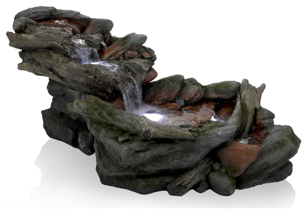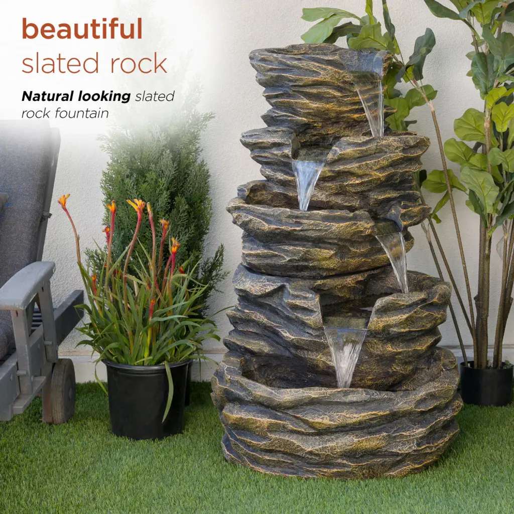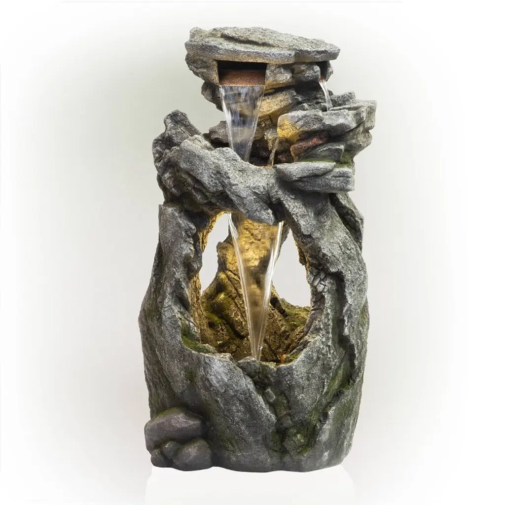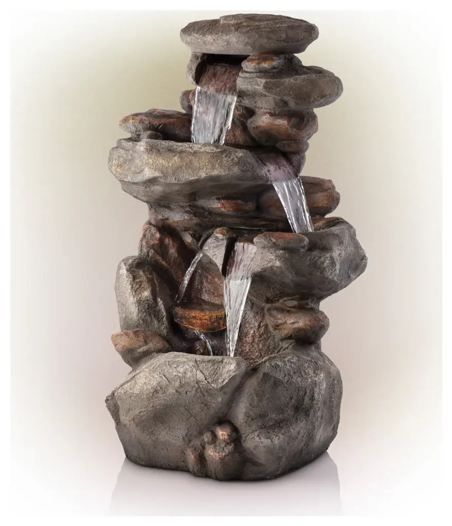 5-Level Rock Pond Fountain With Miniature Lights, Gray