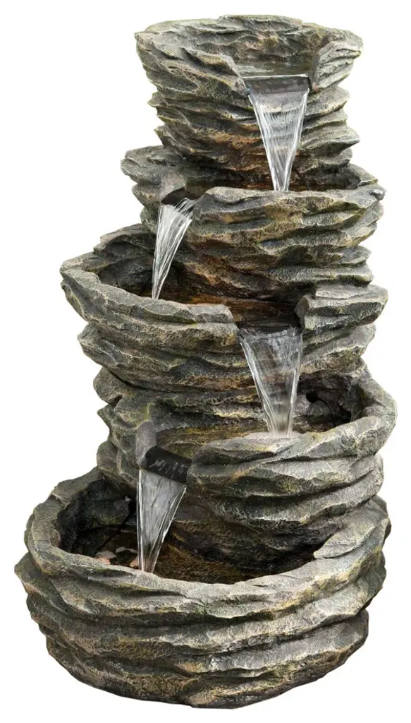 Our 5-Level Rock Pond Fountain utilizes strong geometric designs for a clean, crisp appeal. This generously sized fountain has the look of natural stone with the strength and durability of fiberglass. Multiple streams of water flow to create a relaxing and meditative atmosphere. Measures 26 inches wide, 25 inches deep and 40 inches tallThey can be placed indoors or out
