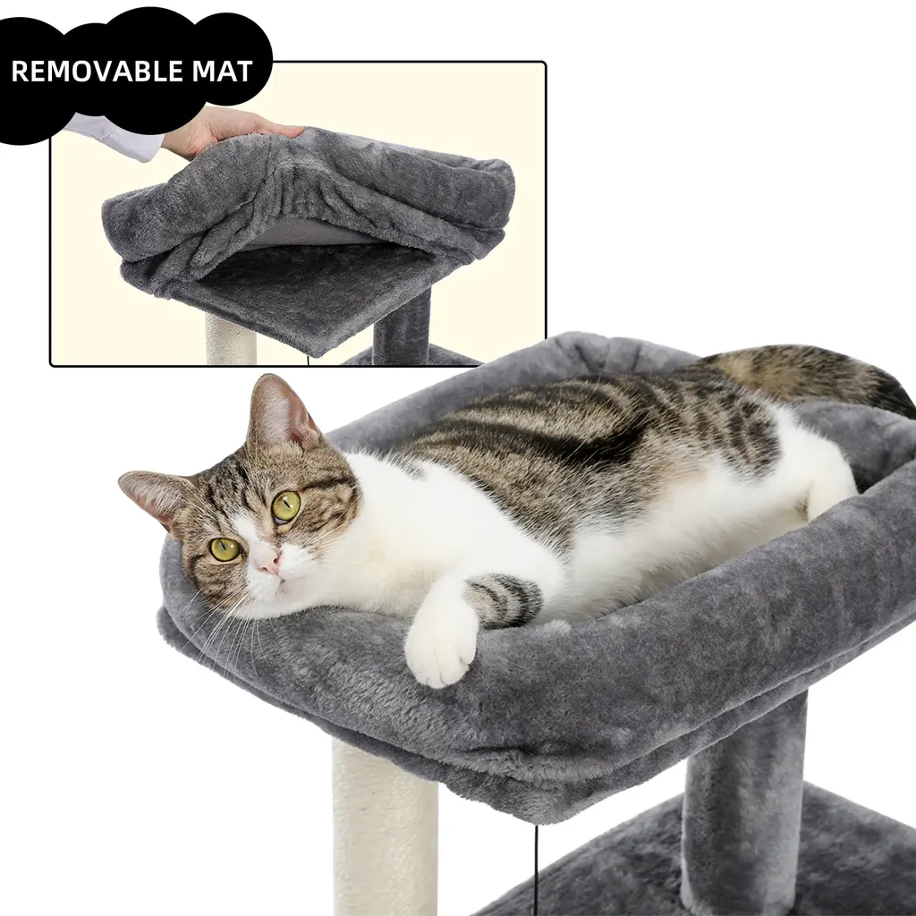5-Level Wooden Cat Tree With Padded Perch Non-Woven Hammock - Multi