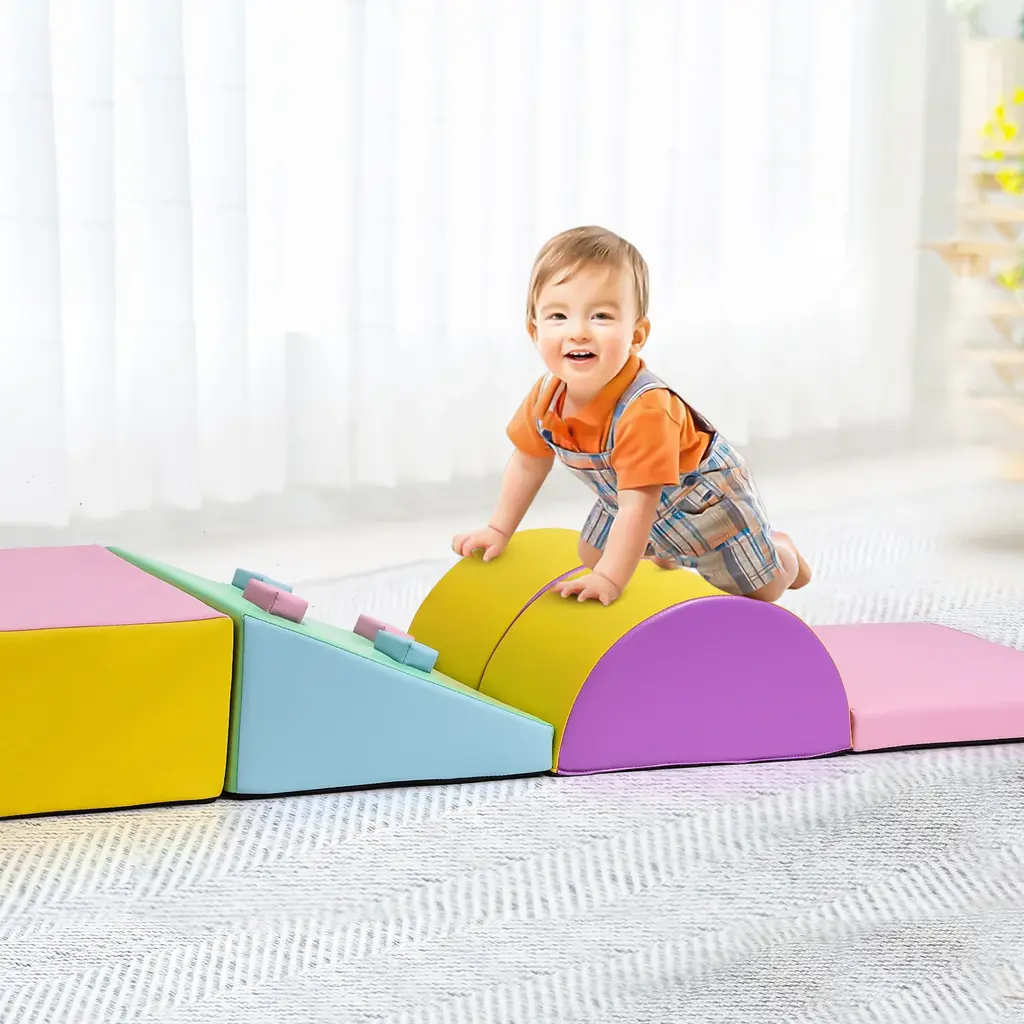 - **Safe & Engaging Play**: Explore and play safely with our Joyspirit Toddler Foam Climbing Blocks Set, featuring high-quality PU leather and anti-slip particles for a secure playtime. CPSIA certified for child safety, it's perfect for toddlers aged 9 months and up. - **5-Piece Versatile Set**: Includes Triangle, Climbing Triangle, Large Cuboid, Small Cuboid, and Half Moon. Combine these pieces in various ways to enhance your child's climbing experience, with dimensions of 71" L x 20" W x 15" H when assembled. - **Enhances Physical Skills**: Boost your toddler's physical development as they climb, crawl, and slide. This set promotes motor skills, enhances balance, and provides a stimulating environment for growth and fun. - **Easy Maintenance**: Keep the play area hygienic with our easy-to-clean surface. Wipe down with a damp cloth to maintain cleanliness, ensuring a safe and tidy space for your child's adventures. - **Reliable Customer Service**: Packaged conveniently in one box with a commitment to satisfaction. Contact our dedicated after-sales team for any assistance or inquiries to ensure a happy, hassle-free experience. Baby > Baby Gear > Activity Gear > Gyms & Playmats
