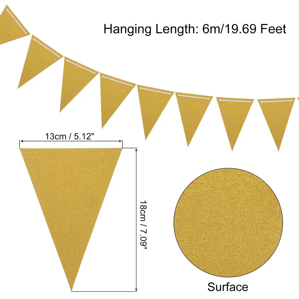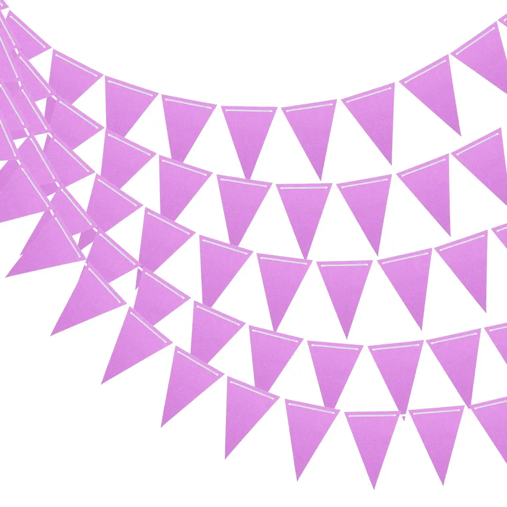 What is this?This pennant banner is mainly used for party decoration, you can hang or stick these decorative ribbons on the wall, window, door or shelf to add a different atmosphere to your party, mainly used for birthdays, weddings, Christmas, Easter, masquerade, graduation party and other partiesWhat will I get?Material: PaperColor: Dark PurpleFlag Quantity:15Hanging Length: 6m/19.69 FeetTriangle size:13*18cm / 5.12 x 7.09 inch(W*L)Package content:5 Pcs x Triangle HangingIs there any advantage of the product?1. This pennant banner flag is made of paper, not easy to bend and break, and can be repeated. After the party is over,just take it off and fold it back.2. Pennant banner flags string has solid color, you can DIY draw any pattern you want on the banner, adding a variety of decorations to your party.3. These triangle bunting flags are very easy to use, strong rope, so that you will not fall off easily even if you hang it outdoors, you can hang it on any decorative place you wantHow to use it?Unfold the triangle bunting flags , and then tie the ropes at both ends to a fixed positionWhat should I notice?Tips: please confirm the length before you buy.