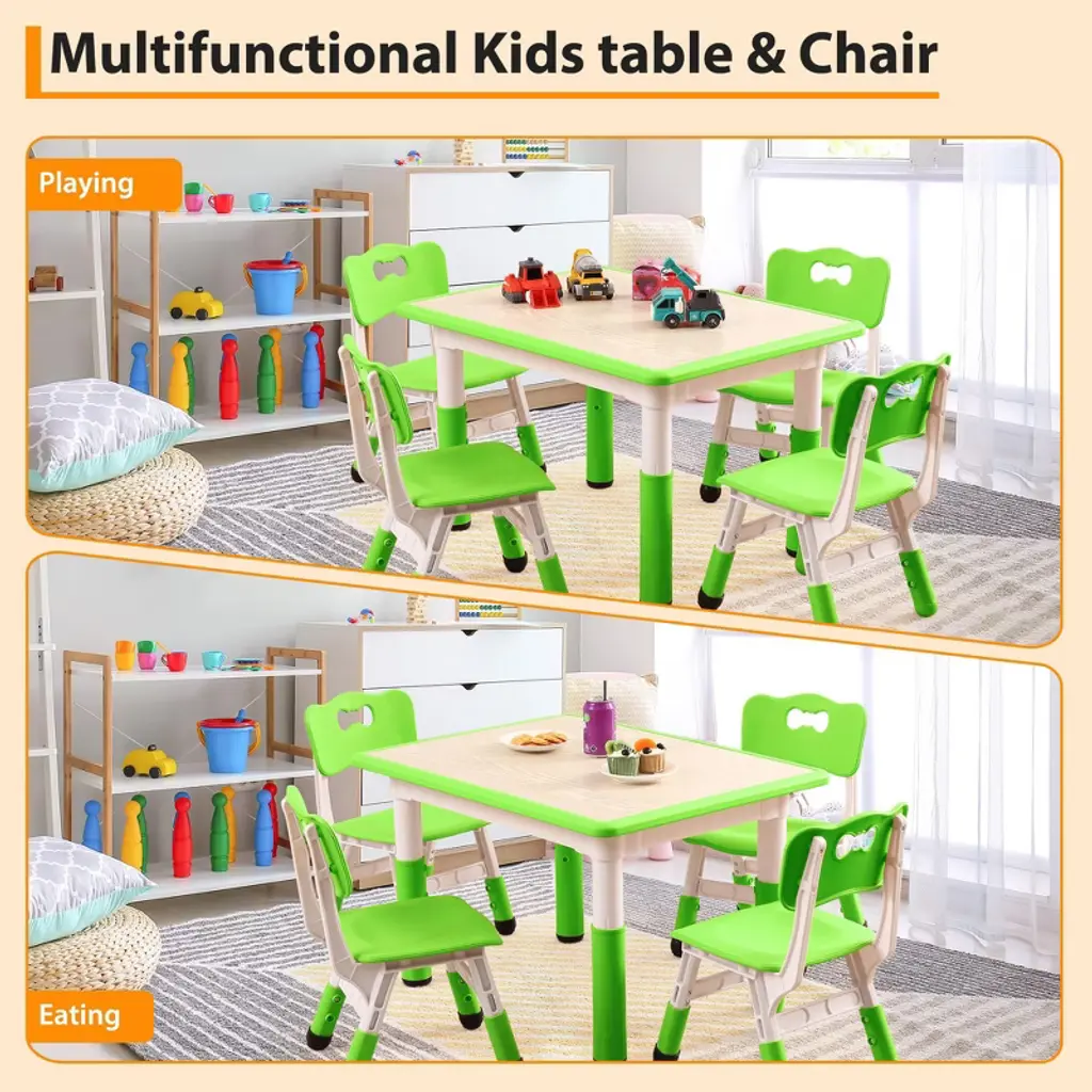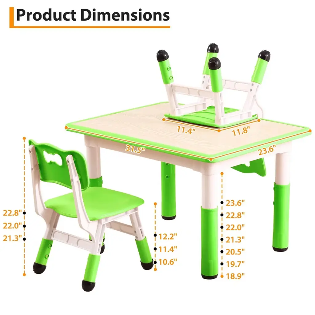 5-piece Kids Table And Chairs, Height Adjustable Toddler Table And Chair Set With Graffiti Desktop, Non-slip Legs For Classroom, Daycare, Green