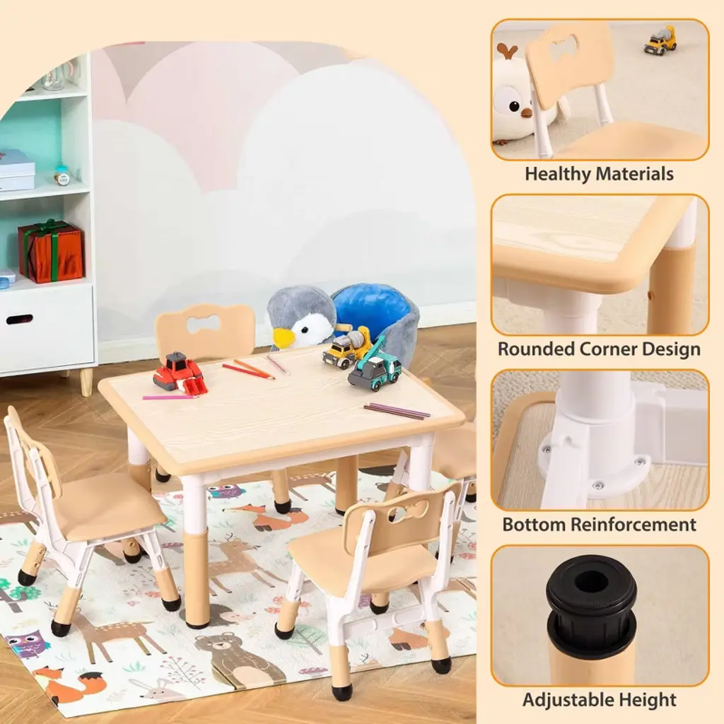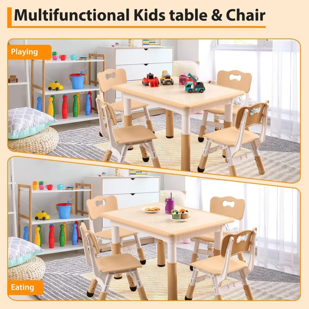 5-piece Kids Table And Chairs, Height Adjustable Toddler Table And Chair Set With Graffiti Desktop, Non-slip Legs For Classroom, Daycare, Natural