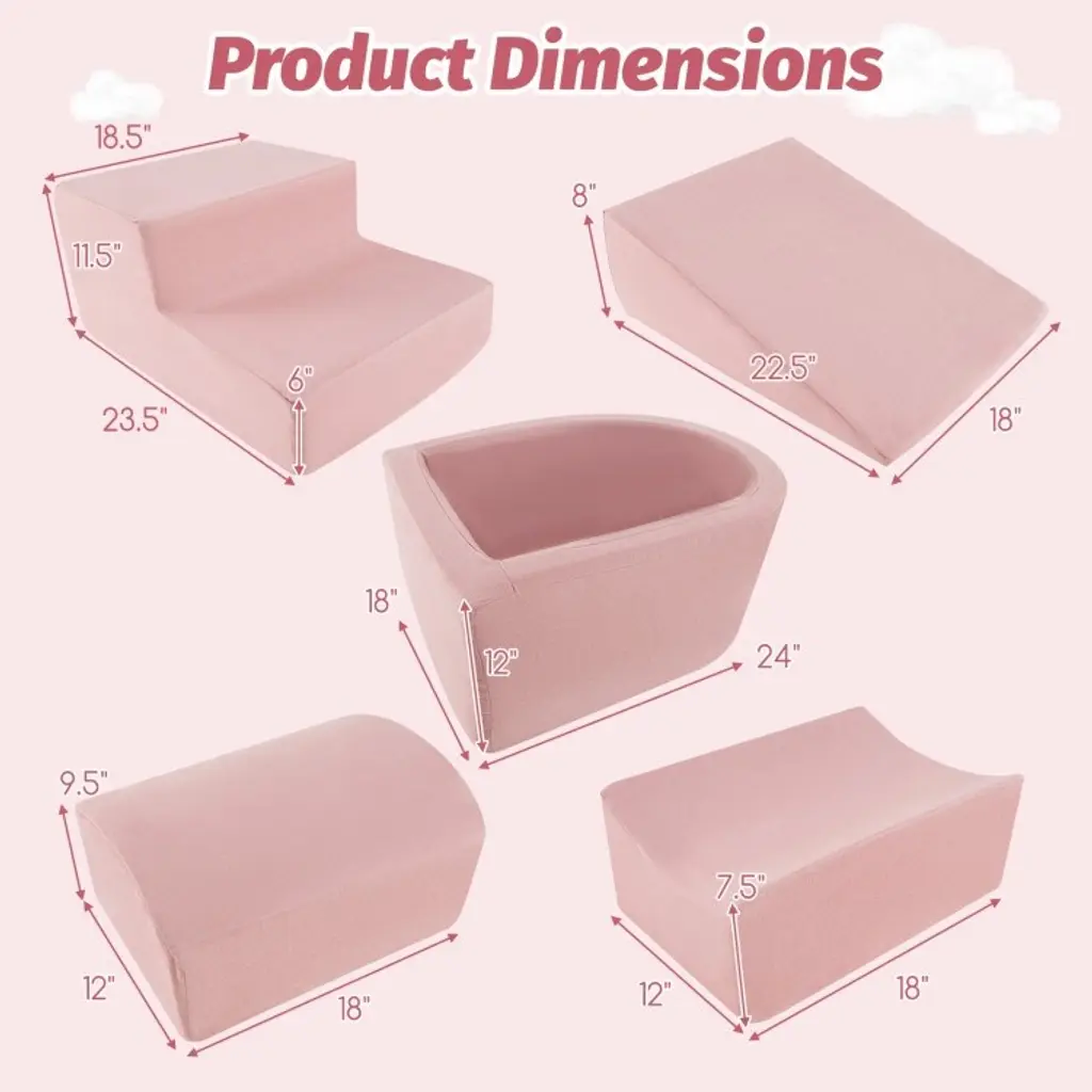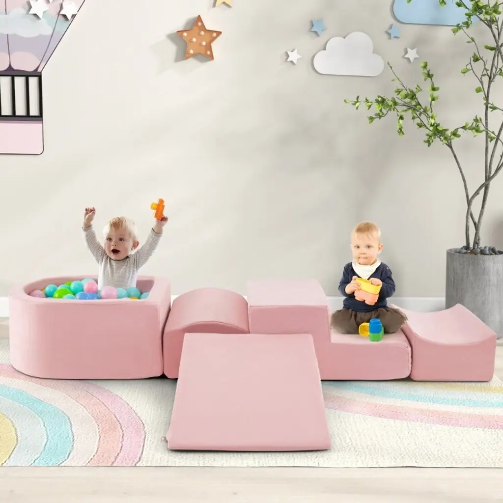 Specification:Key Features:Description:This 5-piece climbing and crawling playset for kids features a slide, step, half-moon, concave, and ball pit, offering endless fun and imaginative play. Crafted from soft, durable materials, it includes high-density sponge wrapped in breathable suede fabric for comfort and long-lasting use. The smooth, non-rigid design ensures a safe, hazard-free environment for children aged 3 and up. Perfect for developing motor skills, coordination, and cognitive abilities, it requires no assembly and is easy to clean with machine-washable covers. Ideal for a playroom or children's space, it encourages active exploration and play.