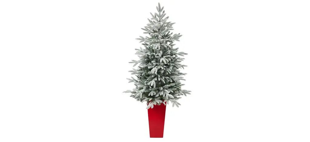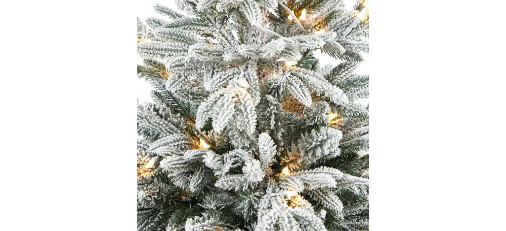 If you're dreaming of a white Christmas, look no further, the 5' Pre Lit Flocked Manchester Spruce Artificial Tree makes your wish come true. Designed to mimic real evergreen foliage and texture.